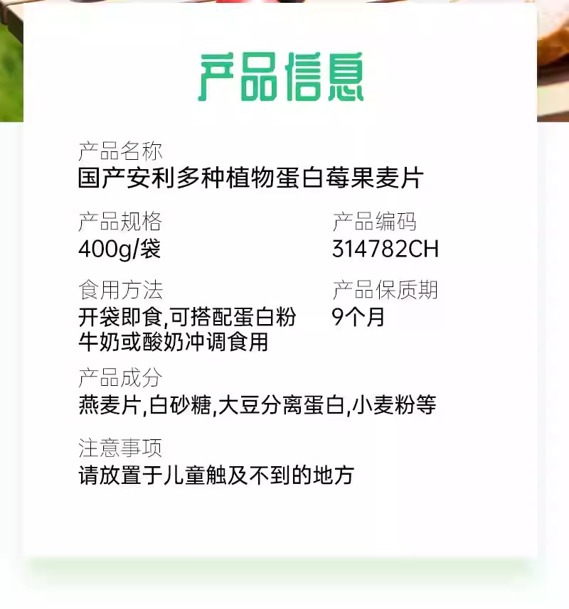安利多种植物蛋白莓果麦片