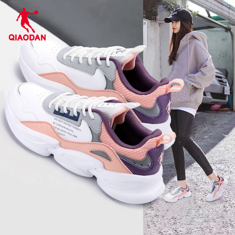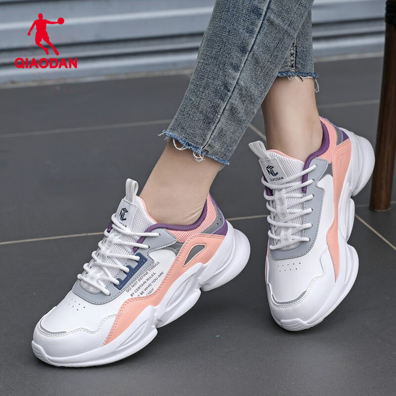 乔丹女鞋皮面防水鞋子夏季跑步鞋旅游鞋厚底老爹鞋春秋款运动鞋女