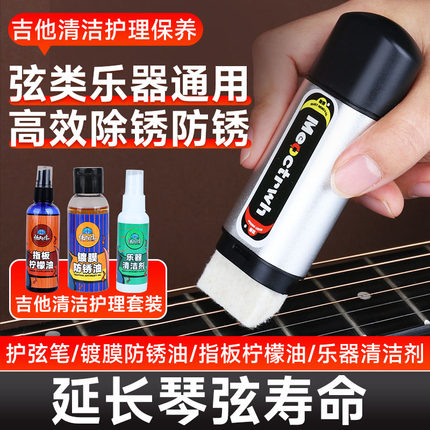 吉他护理保养套装镀膜护弦油琴弦防锈除锈笔指板柠檬油乐器清洁剂