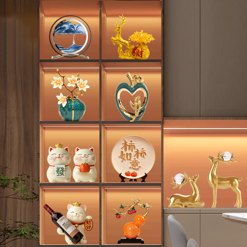 轻奢高档酒柜装饰品摆件客厅电视柜玄关新中式家居工艺礼W品摆饰