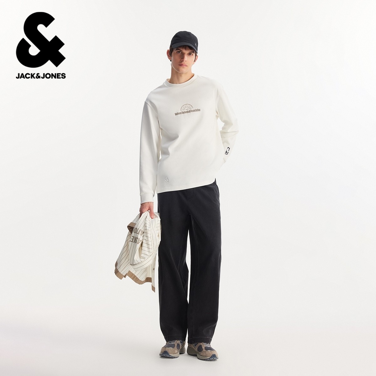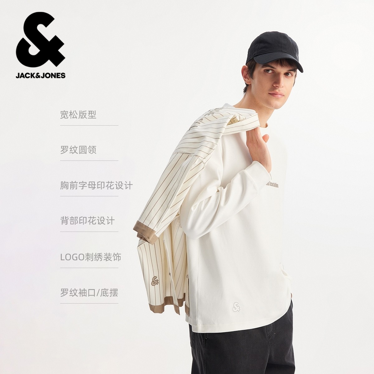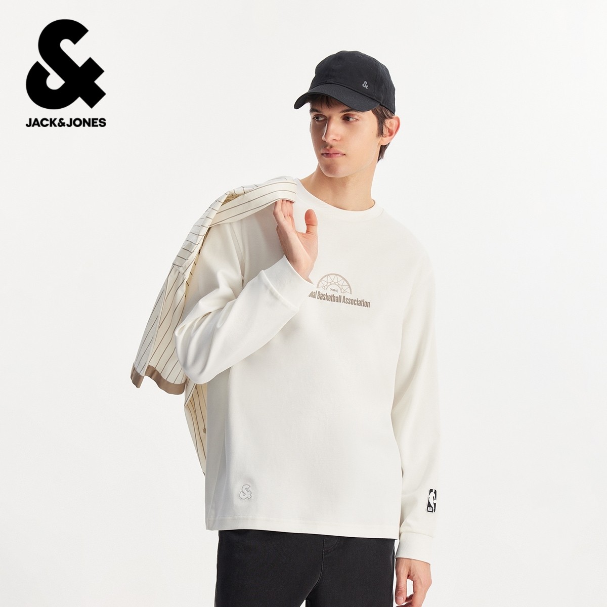 【NBA联名款】杰克琼斯男装春季T恤上衣精致刺绣字母图案印花圆领