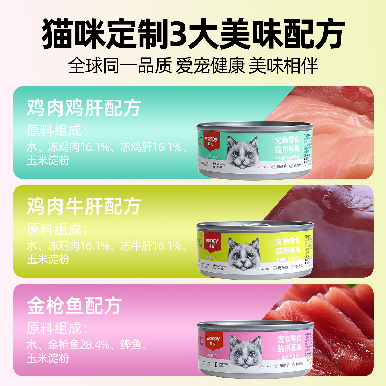 顽皮猫罐头猫咪零食慕斯猫罐头湿粮95g罐装营养金枪鱼肉泥猫粮