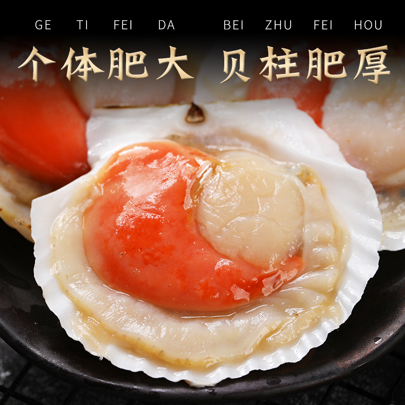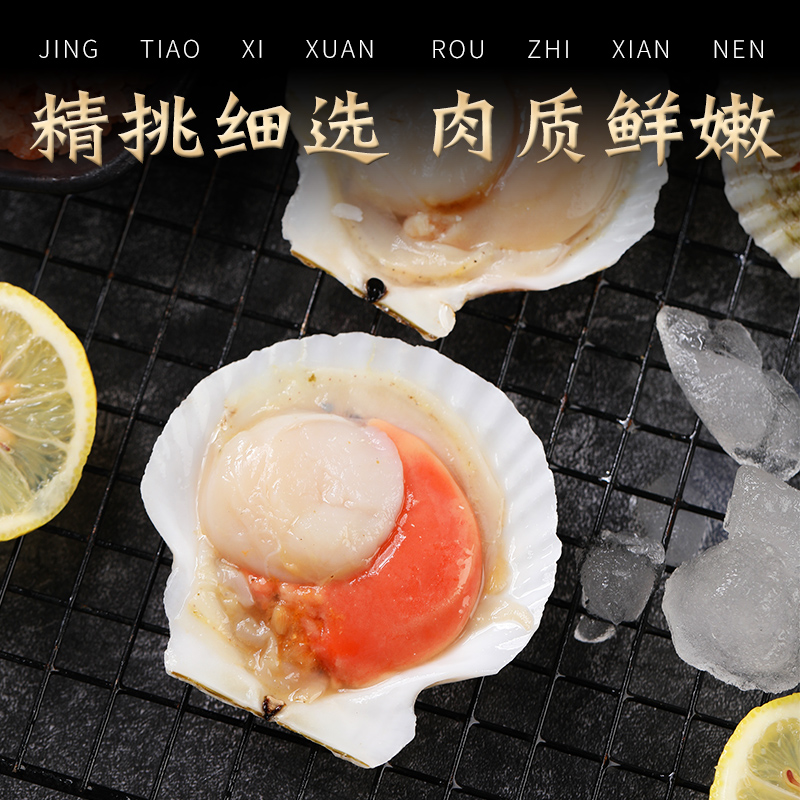 扇贝冷冻半壳扇贝商用新鲜虾夷贝粉丝大扇贝青岛海鲜新鲜水产包邮