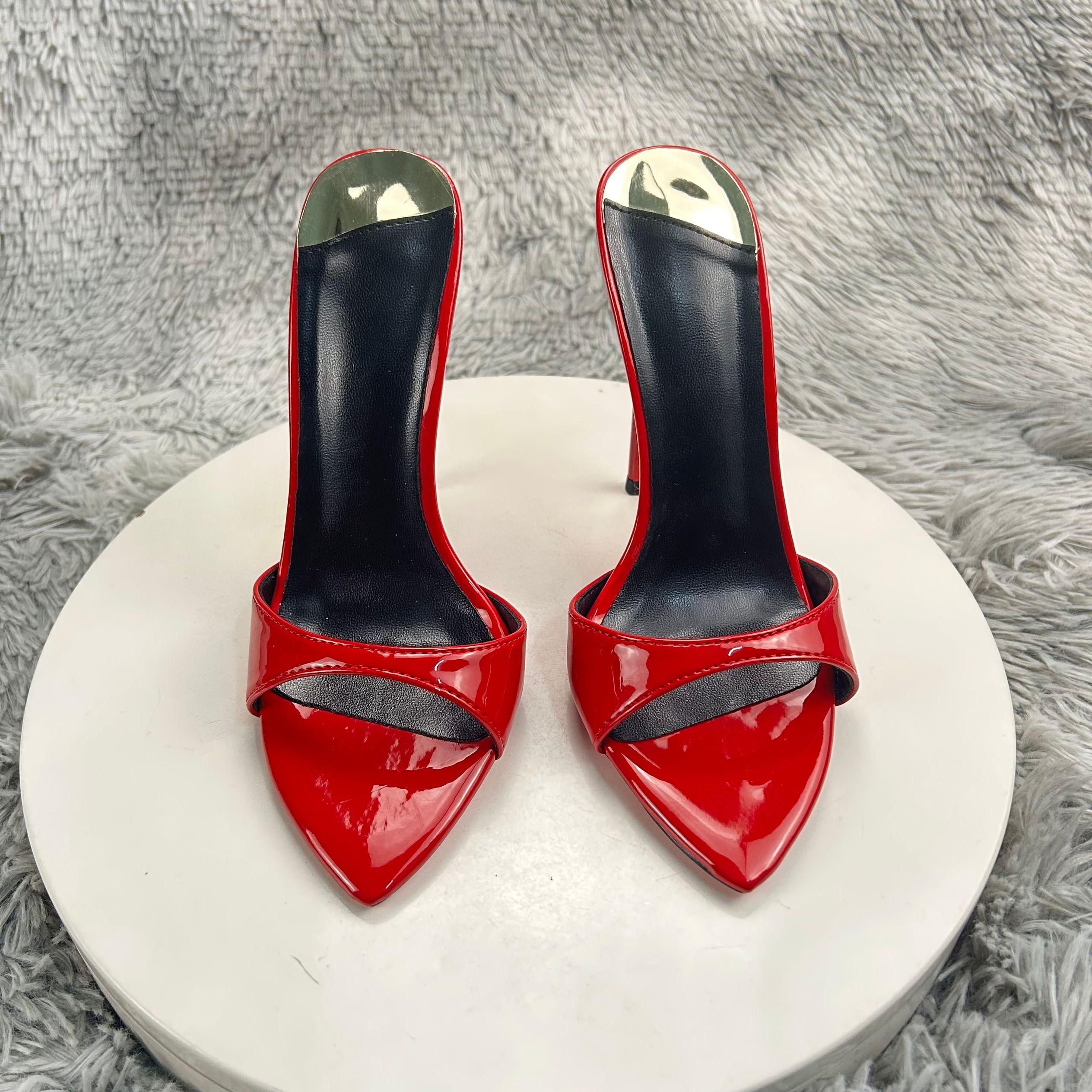 红底新款尖头红色高跟鞋女超高跟凉鞋细跟小众气质外穿半拖鞋12cm