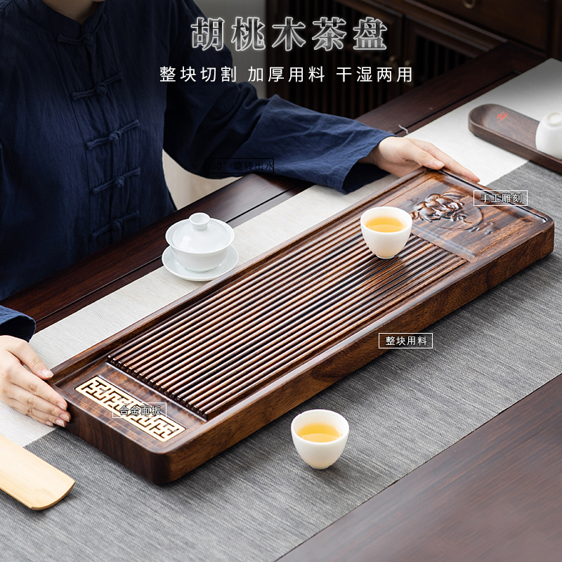 胡桃木干湿两用茶盘实木家用茶托盘干泡台茶台排水盘轻奢精致茶海