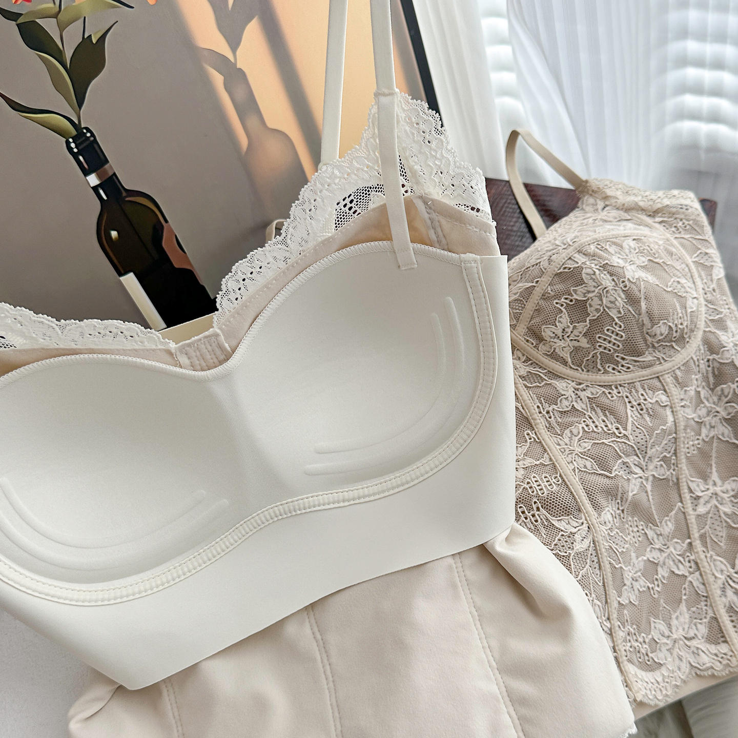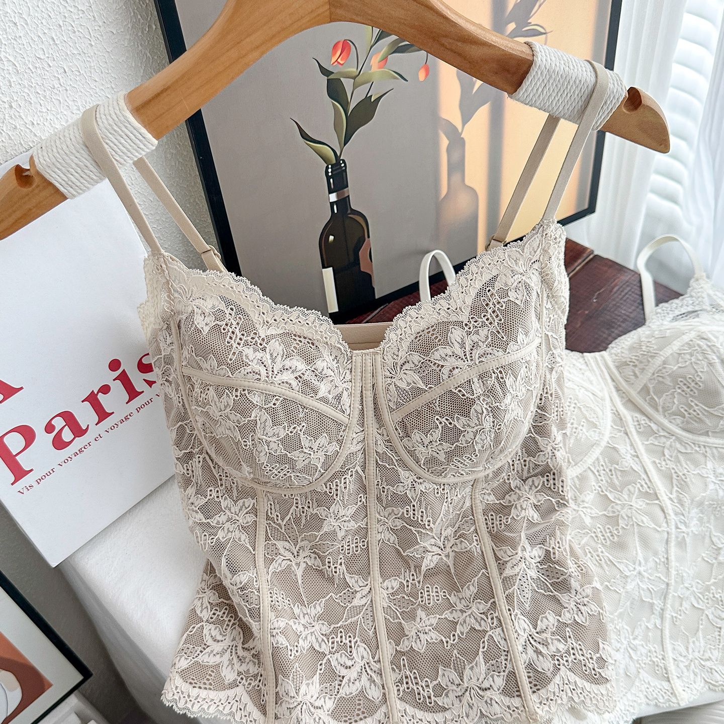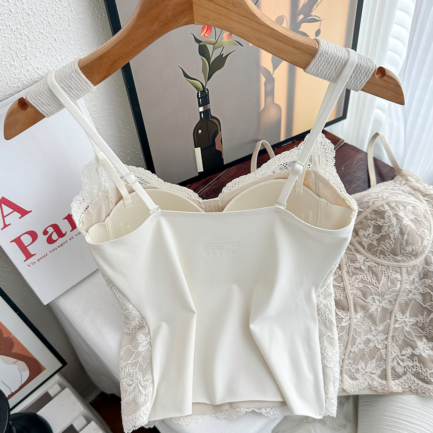 纯欲风性感吊带背心女马甲线蕾丝美背带胸垫内衣轻奢磨毛打底上衣