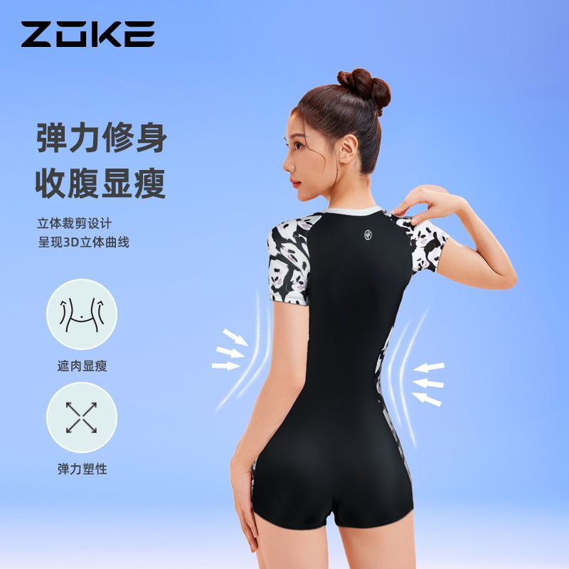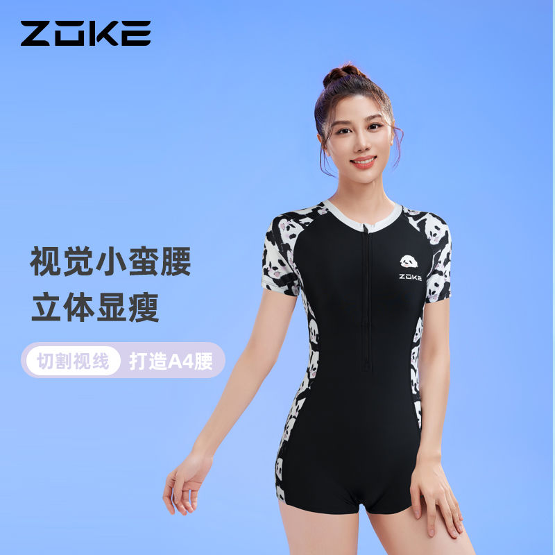 洲克熊猫泳衣女款专业连体平角保守显瘦遮肚泳装竞速游泳运动装备
