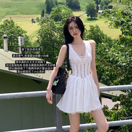 夏日香气浪漫蕾丝收腰小白裙
