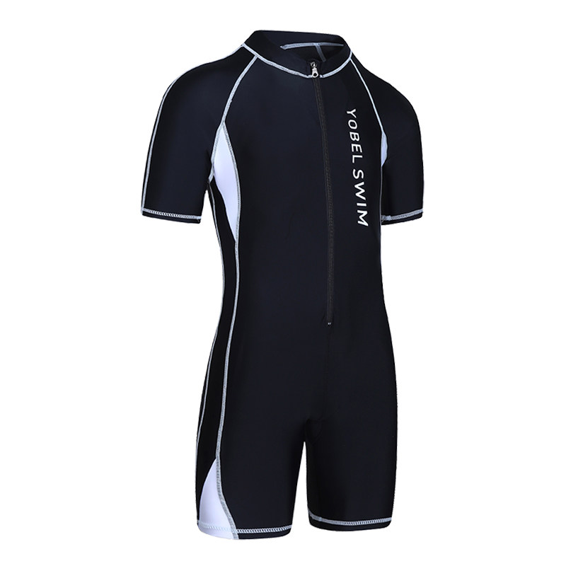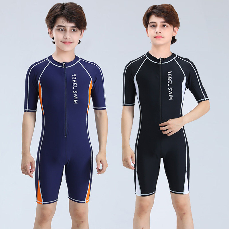 儿童泳衣男童中大童青少年男孩短袖连体学生专业训练温泉游泳套装