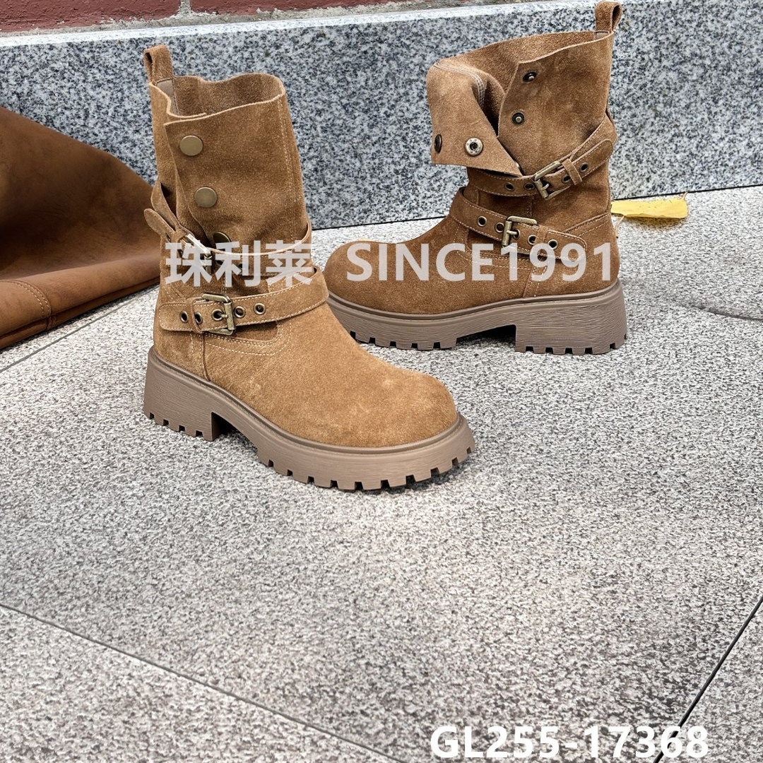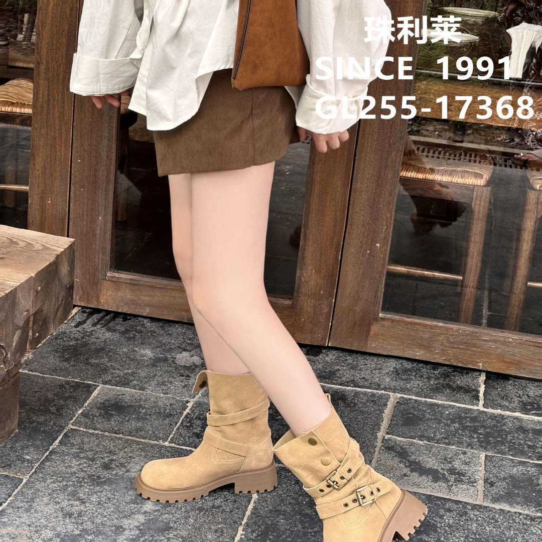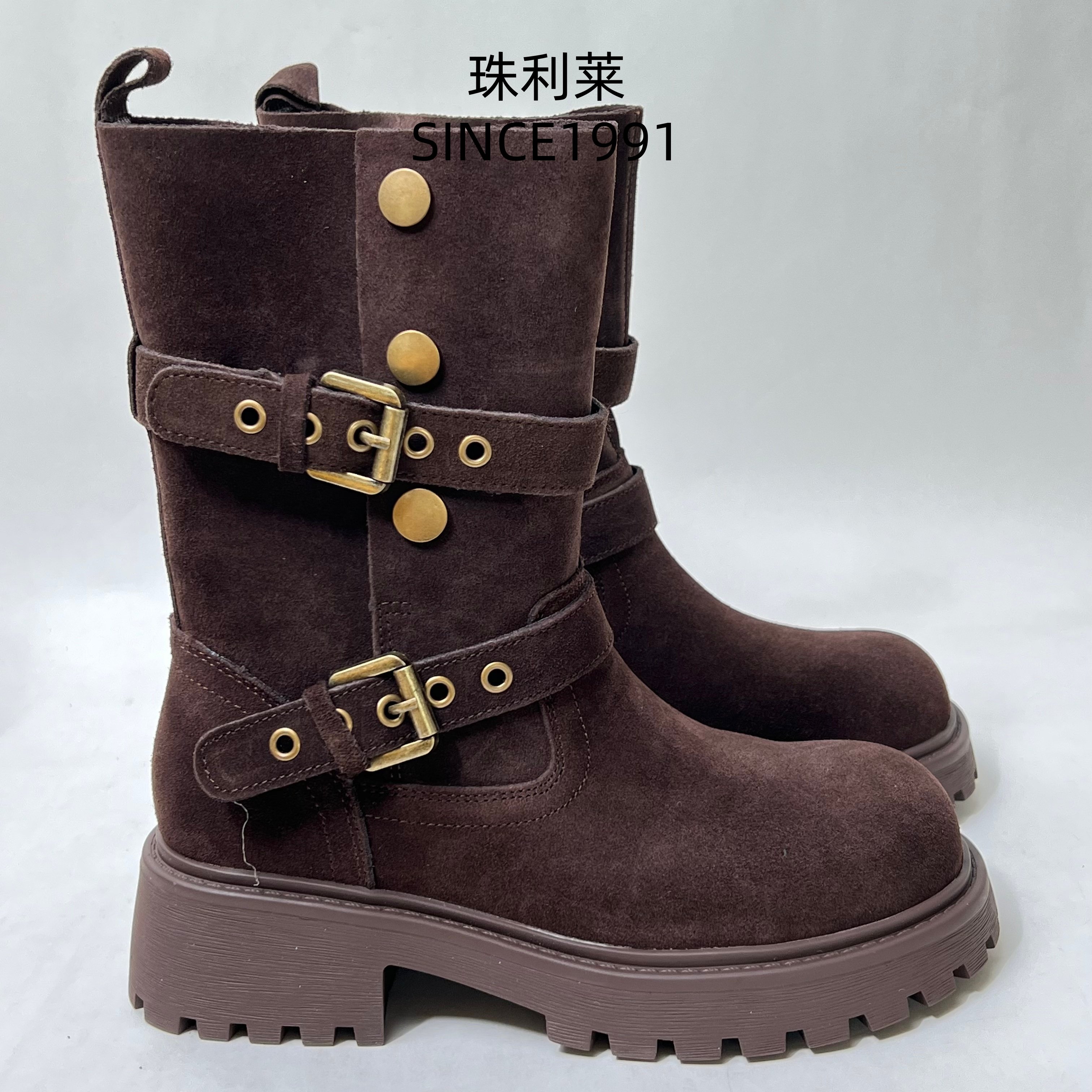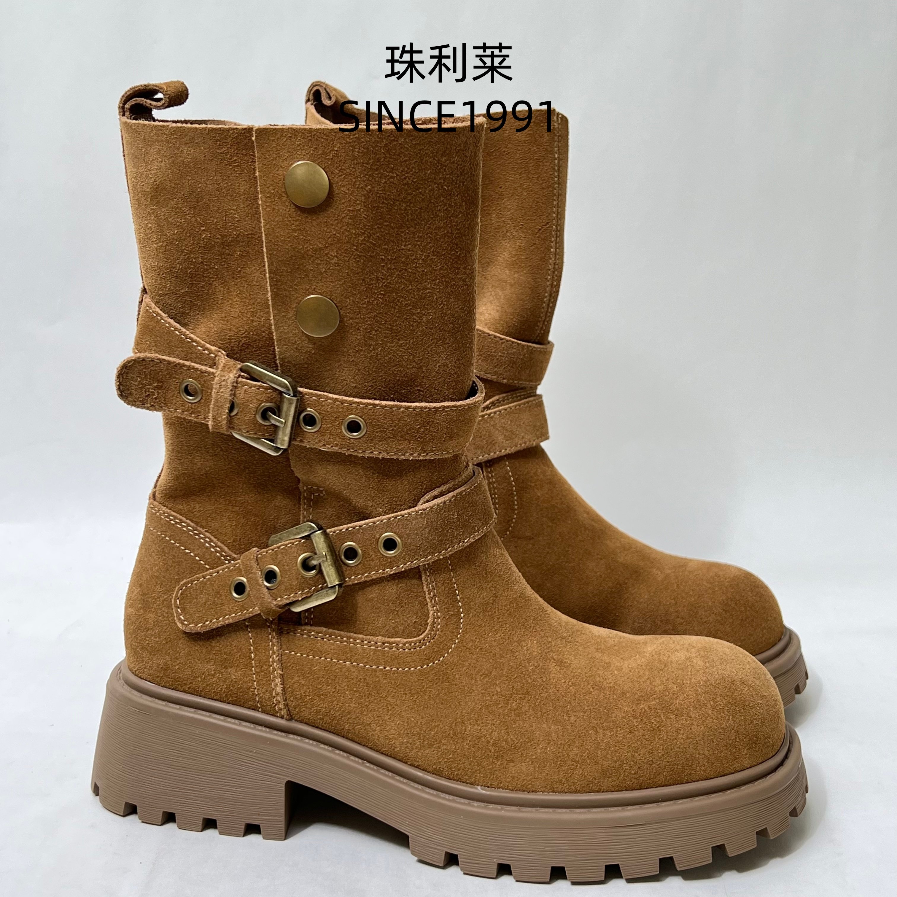 珠利莱2025专柜英伦风皮带扣骑士靴女冬季真皮厚底短靴帅气机车靴
