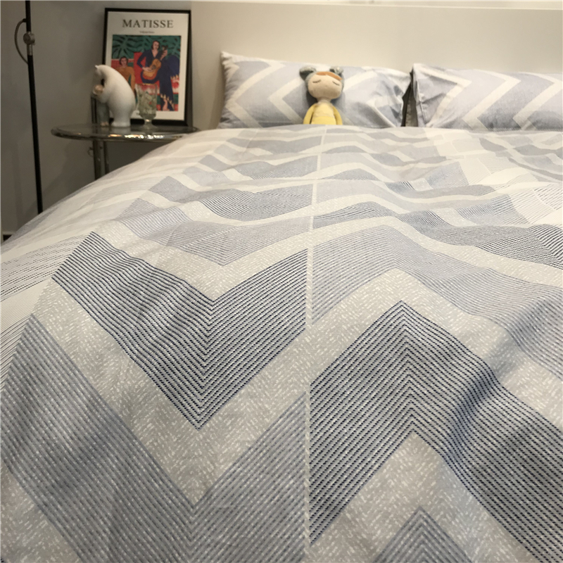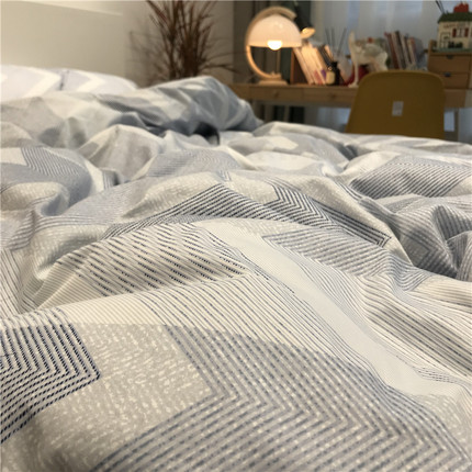 北欧简约条纹男士床上四件套全棉纯棉被套蓝色1.5m学生公寓三件套