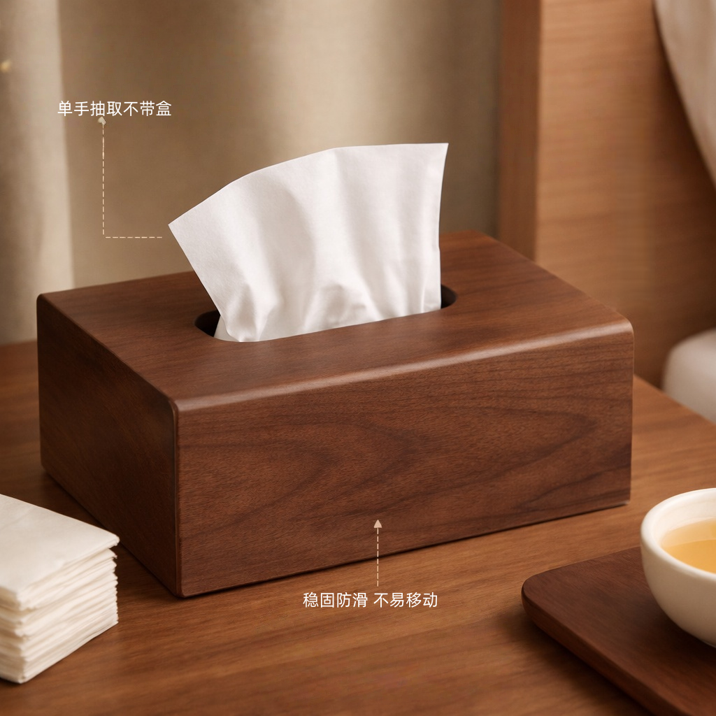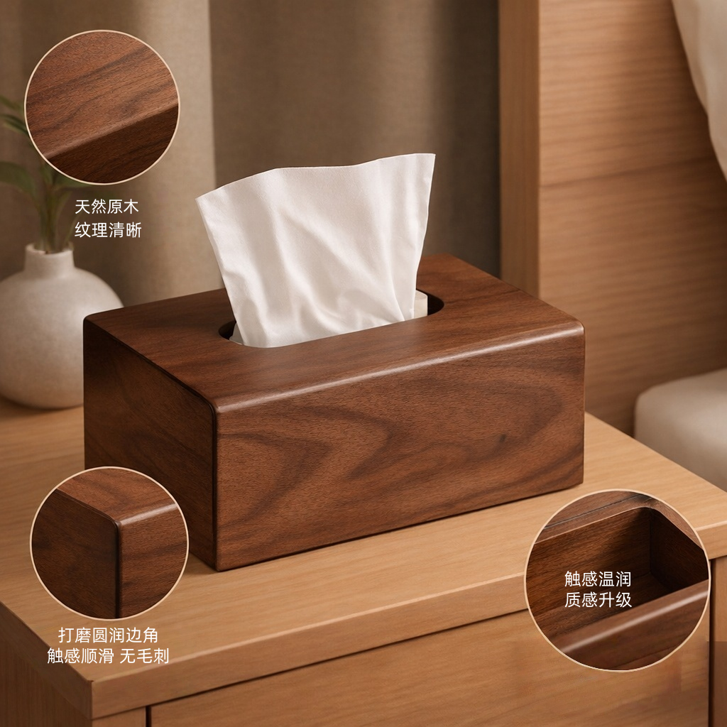 黑胡桃木纸巾盒家用客厅轻奢高档中式餐巾纸盒高级感实木质抽纸盒