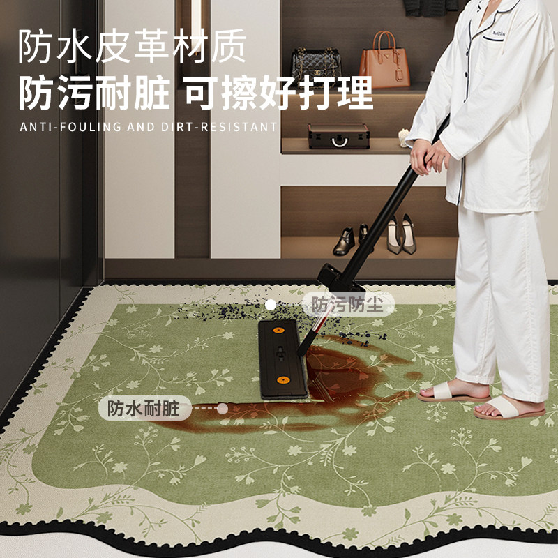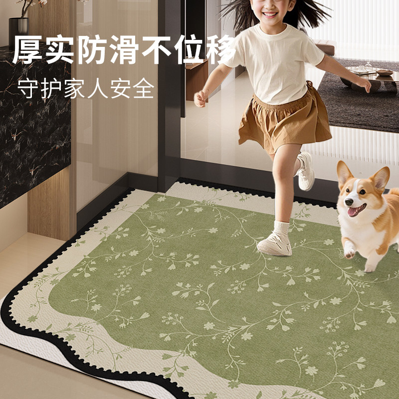 绿色法式门口地垫进门耐脏免洗pvc入户门地毯可裁剪室内玄关门垫