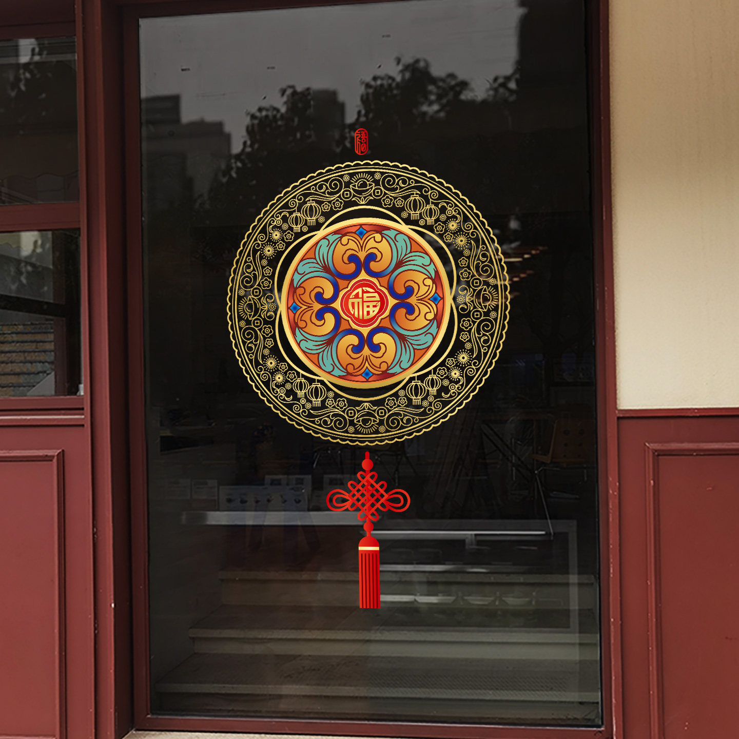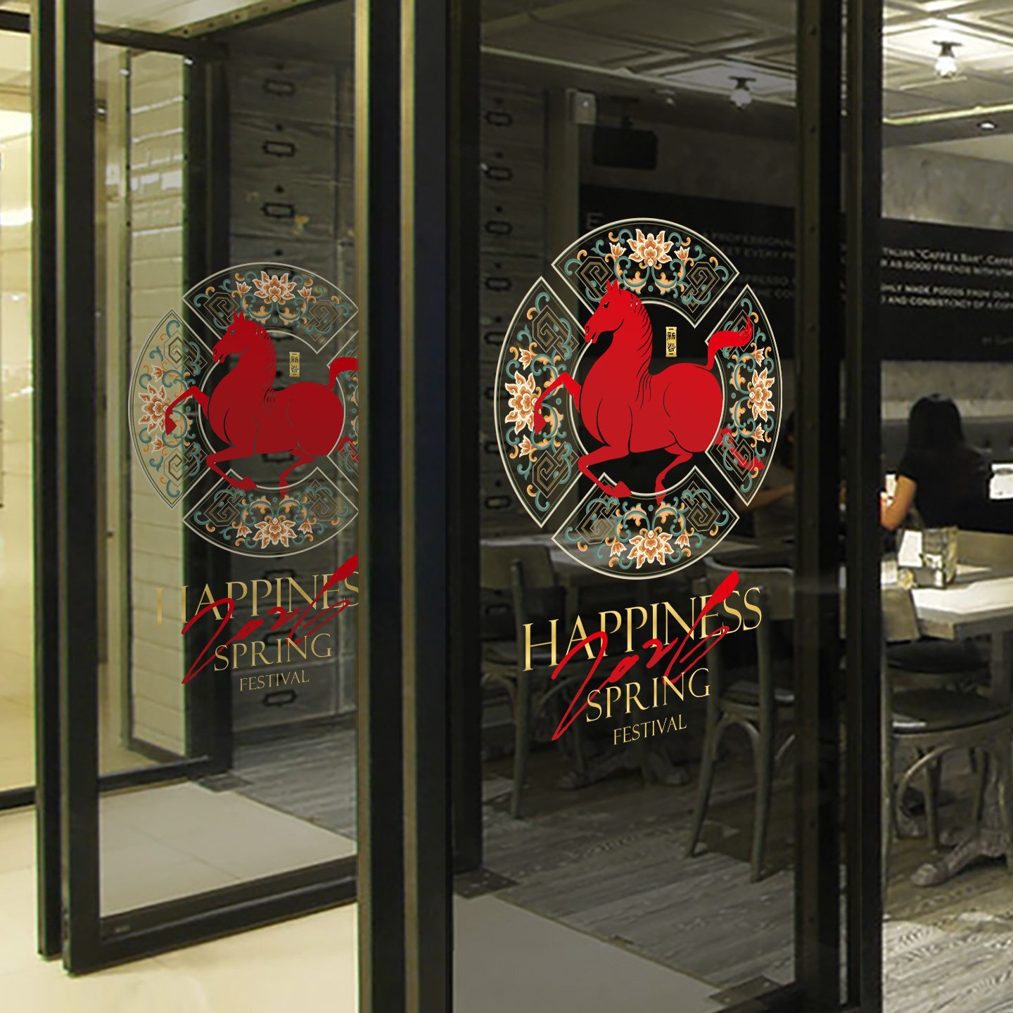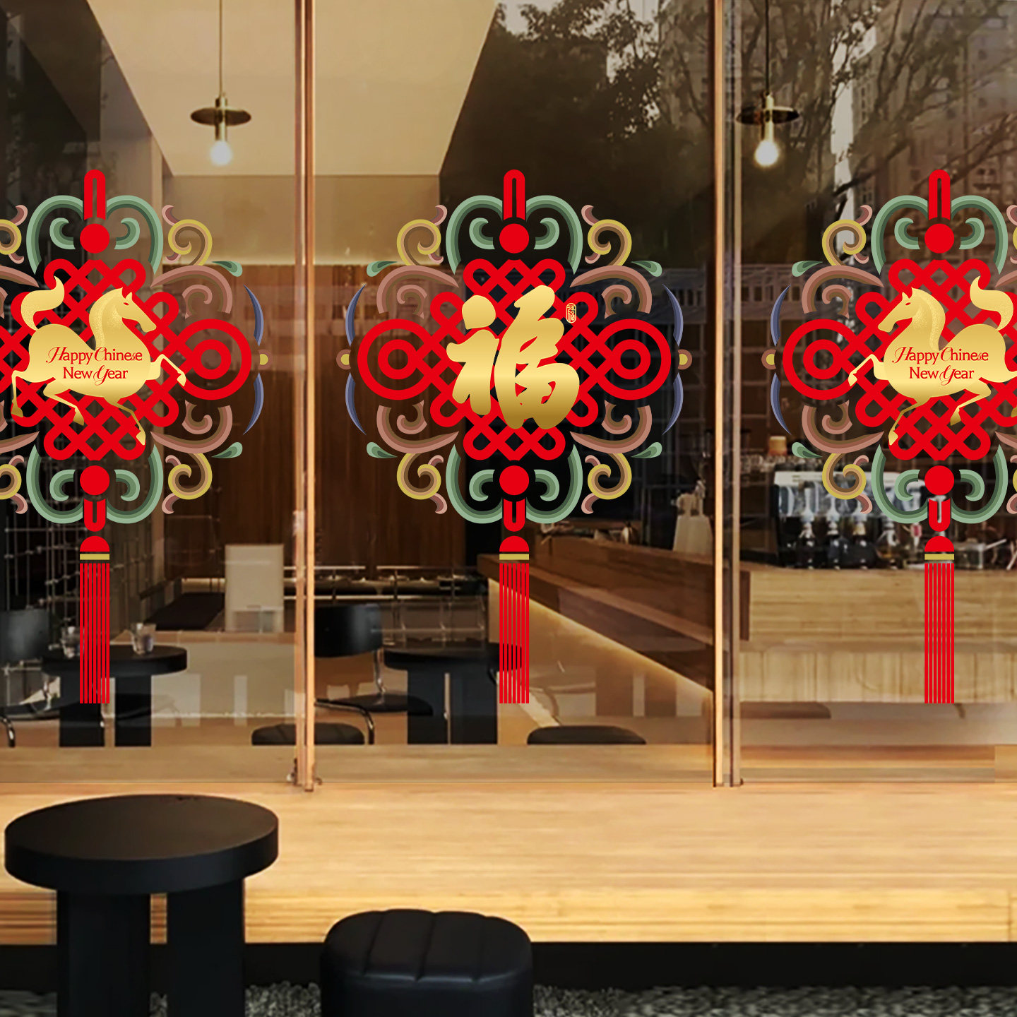 中式窗花装饰马年节日玻璃贴新年