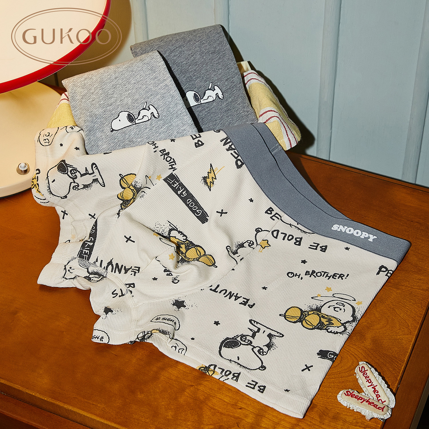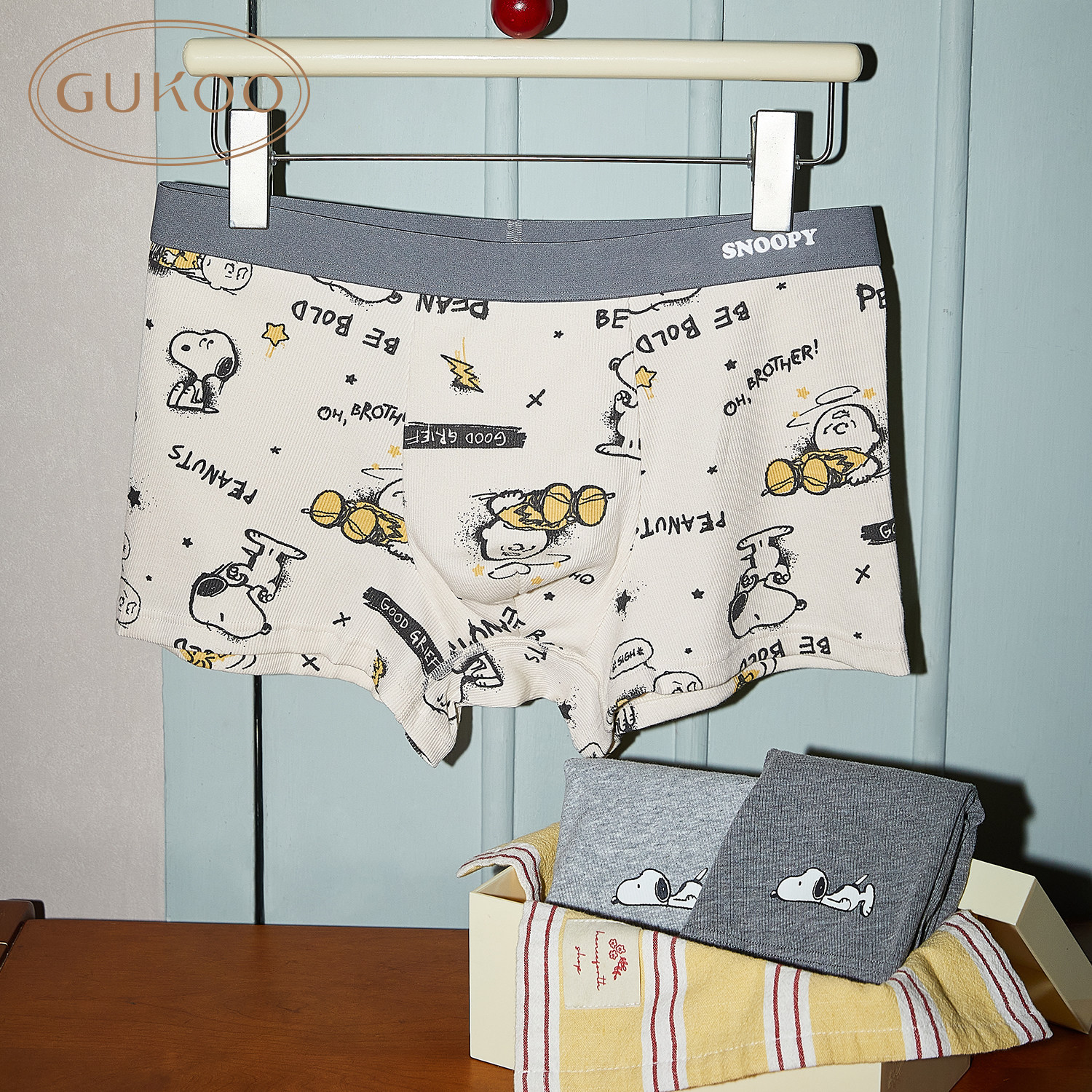 Gukoo/果壳内裤男史努比联名平角新款男士内裤组合装