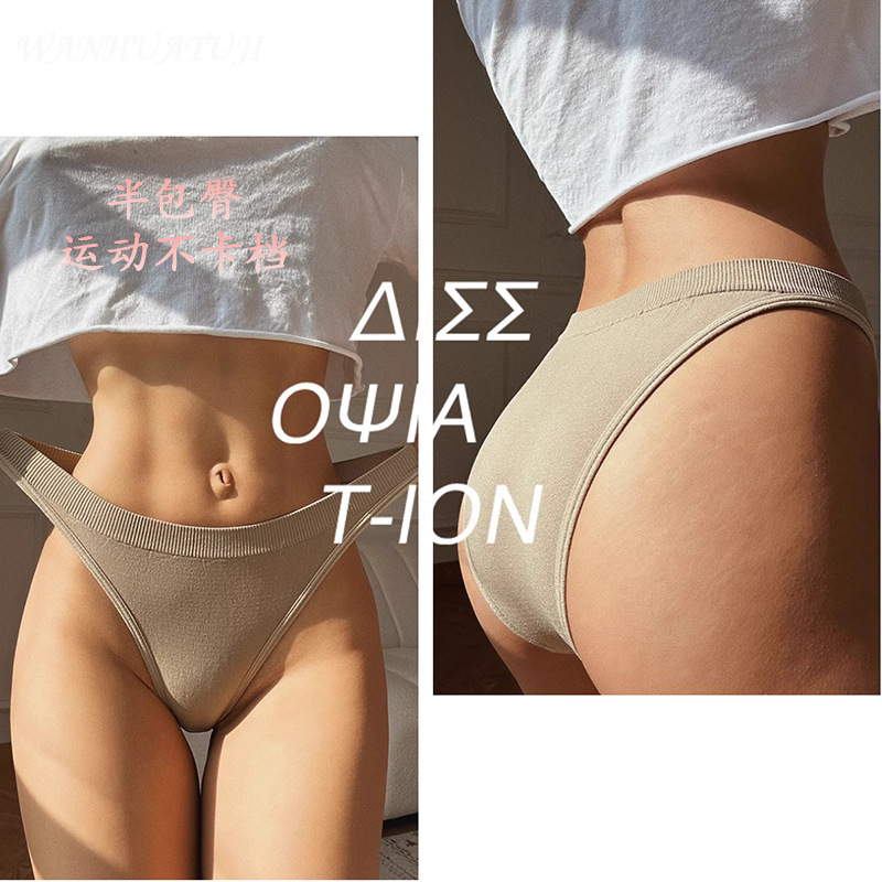 欧美大码运动丁字裤女无缝高弹力运动无痕纯色舒适低腰T字裤