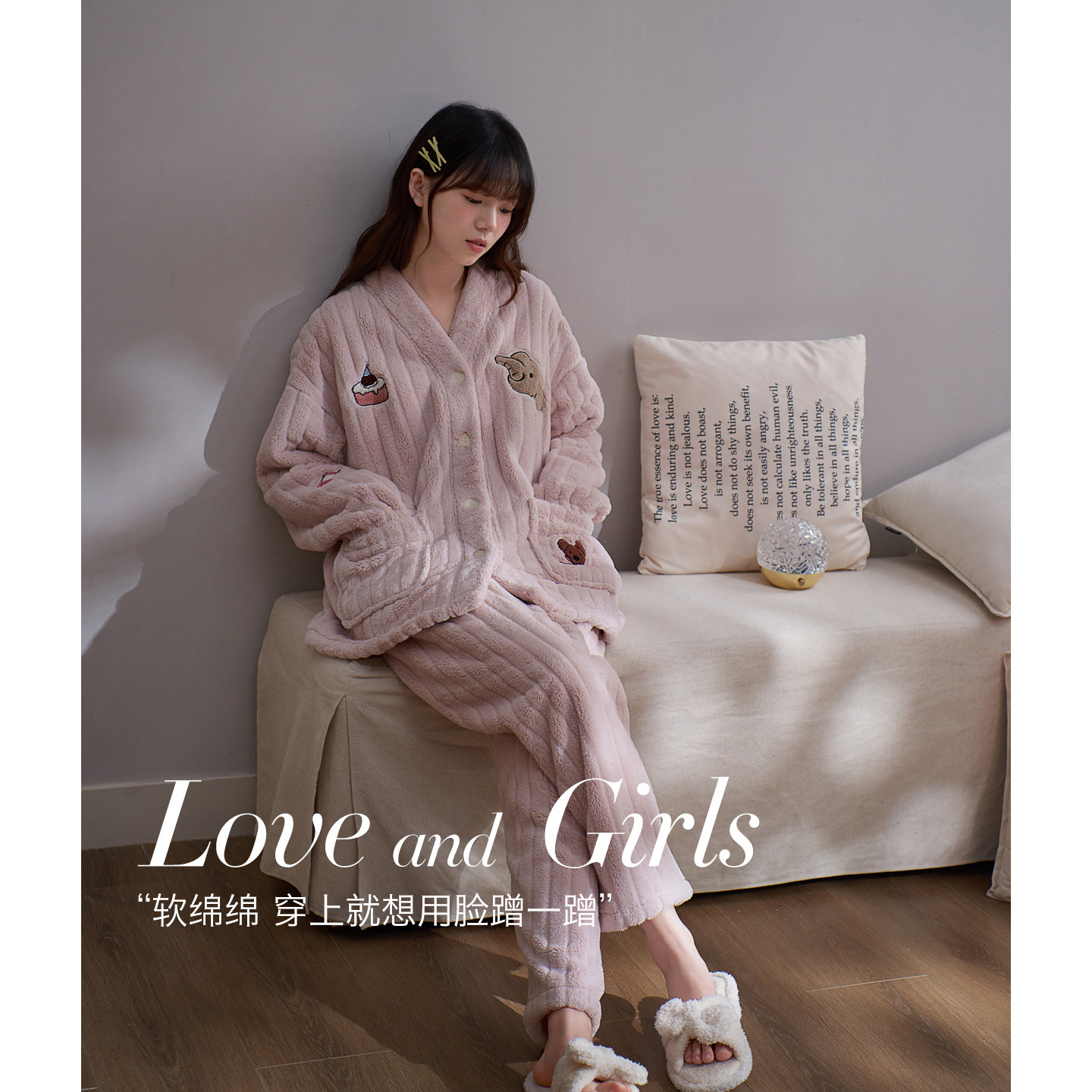 思莉太太冬季睡衣女款珊瑚绒加厚加绒秋冬奶fufu绝美冬天家居服