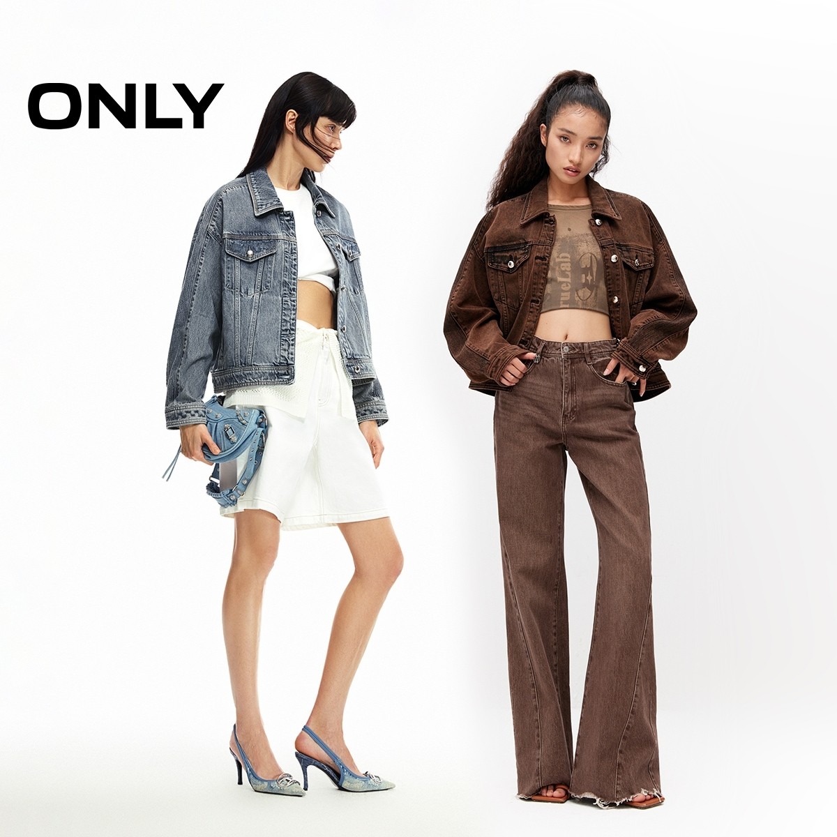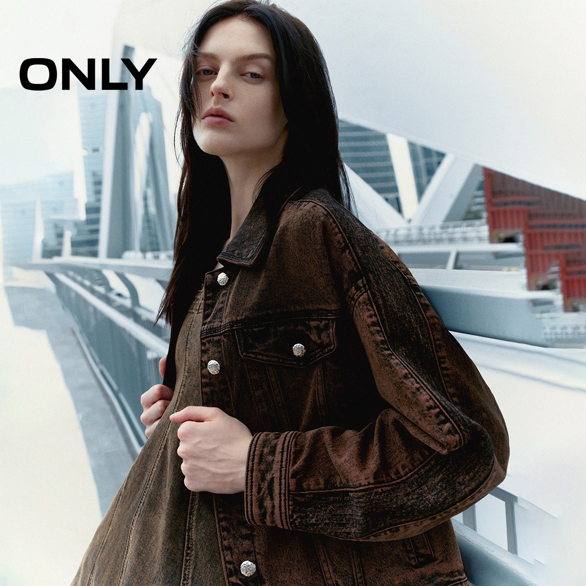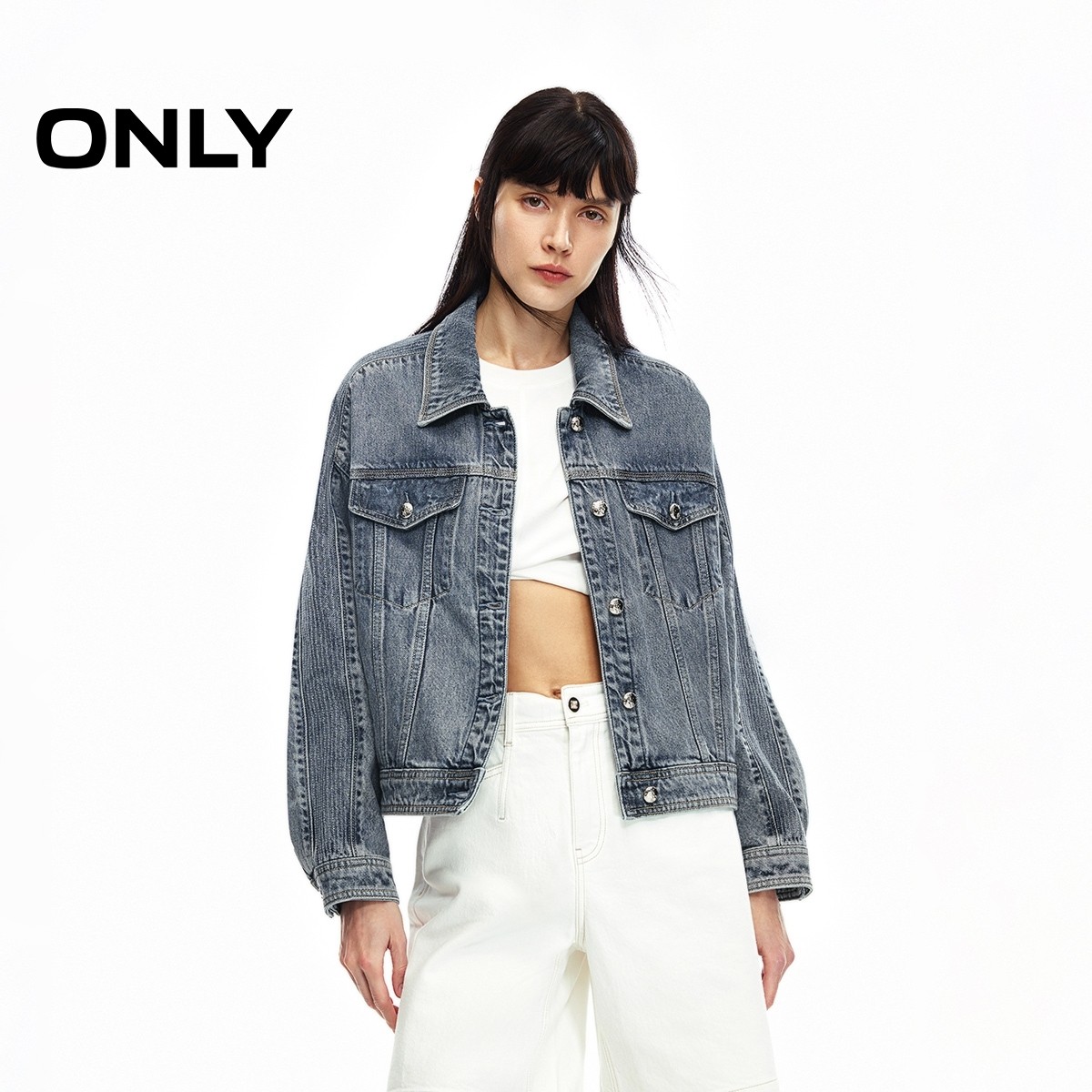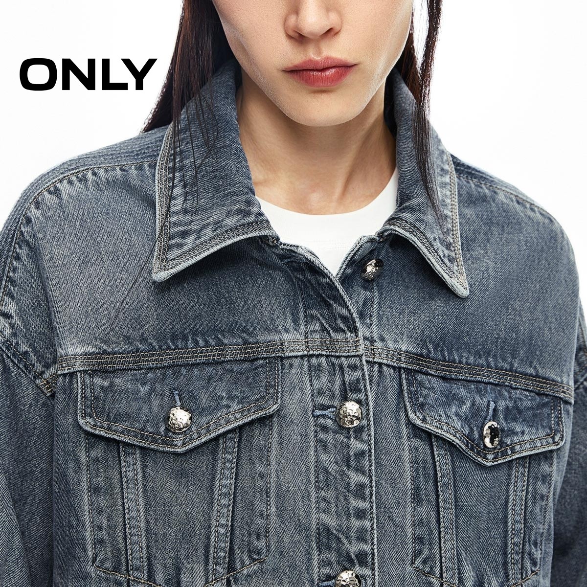 【ONLY奥莱】秋冬时尚设计感翻领宽松落肩牛仔外套女