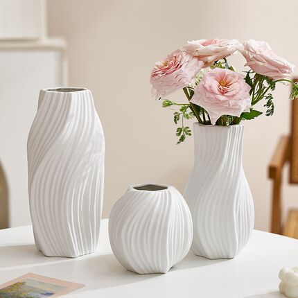 创意陶瓷花瓶白色摆件高级感客厅桌面插花装饰轻奢玄关电视柜摆设