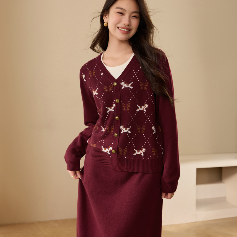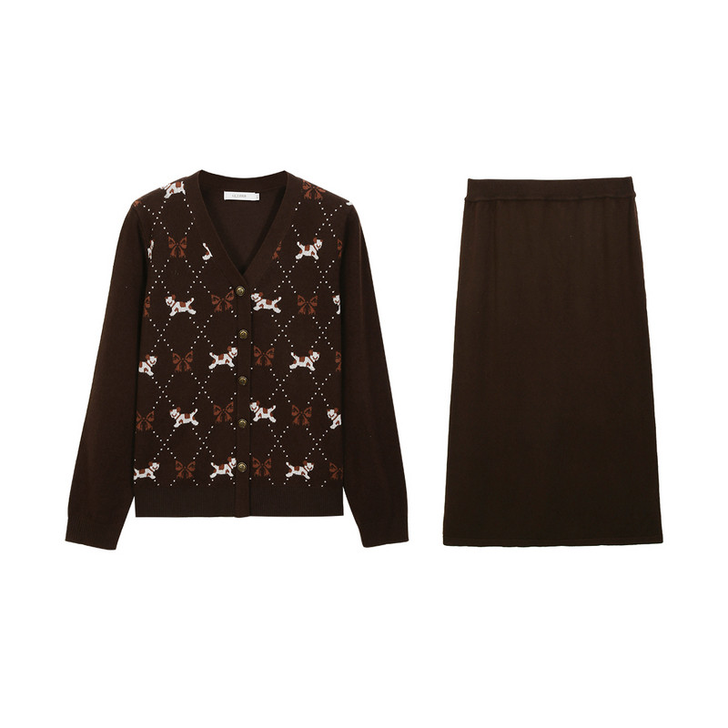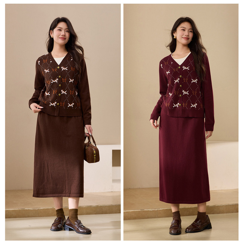 【萌宠乐园】慵懒风V领毛衣半身裙套装纤莉秀大码女装胖mm冬新款