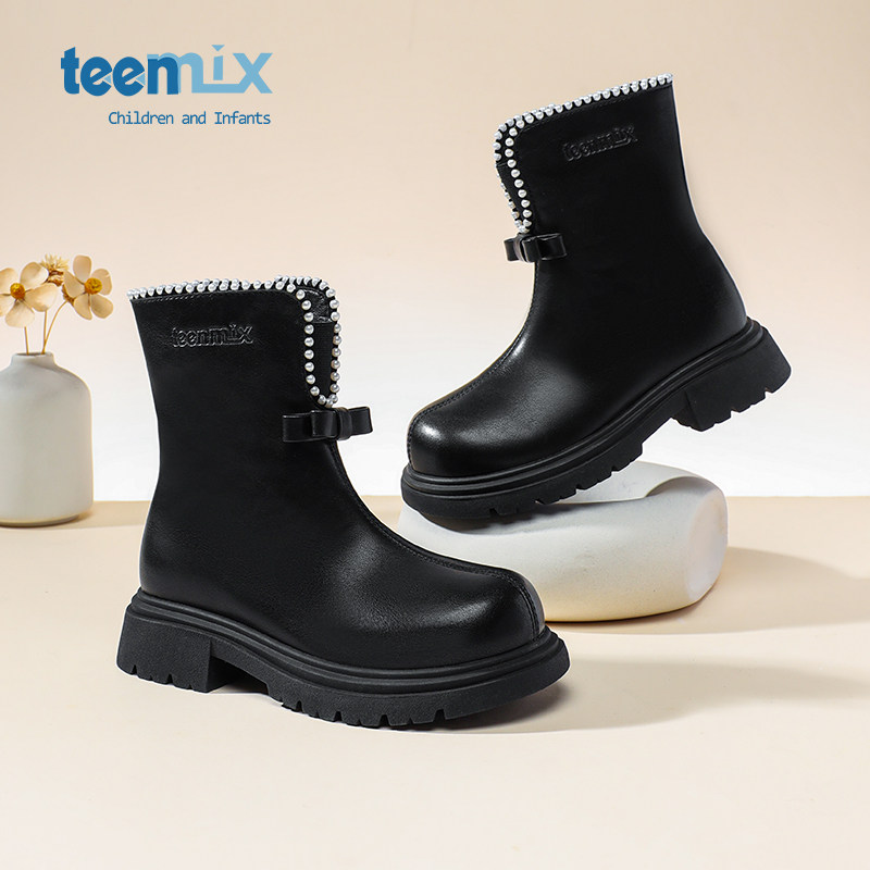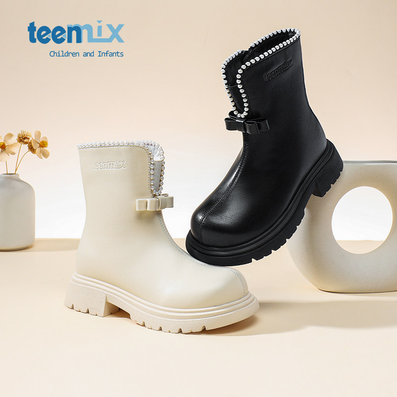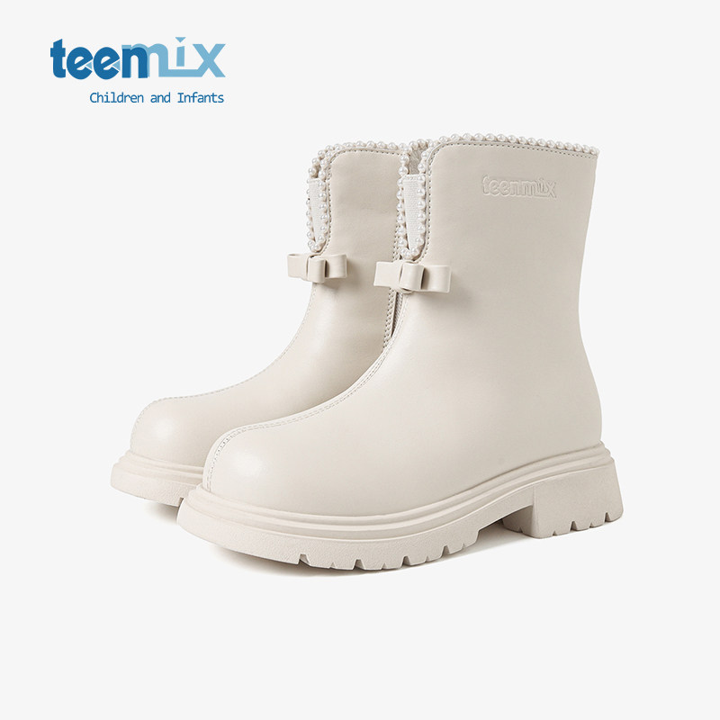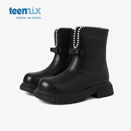 天美意童鞋儿童马丁靴女童短靴子冬季加绒雪地靴2026新款中大童靴