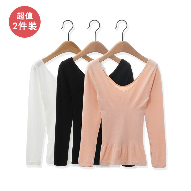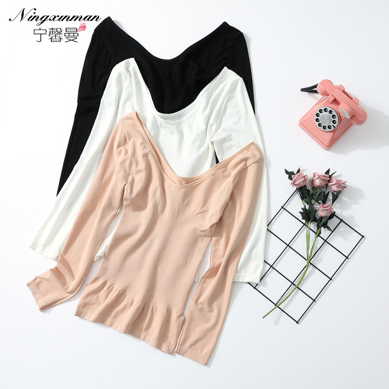 大领口低领U型领美体塑身收腹薄款保暖内衣长袖上衣女秋衣打底衫
