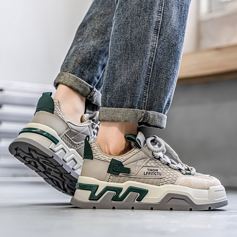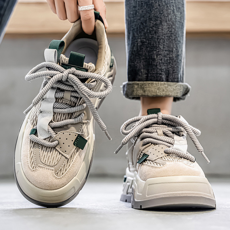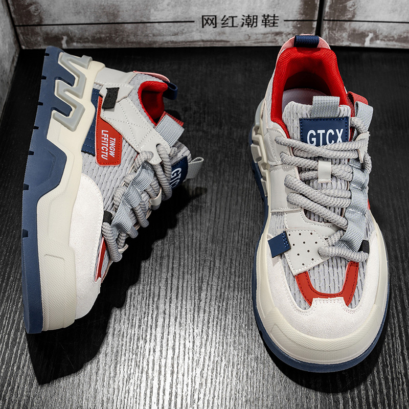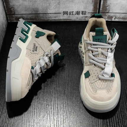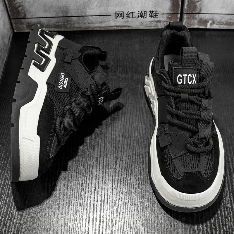 男鞋秋季透气韩版百搭休闲小众设计板鞋青少年防滑厚底增高运动鞋