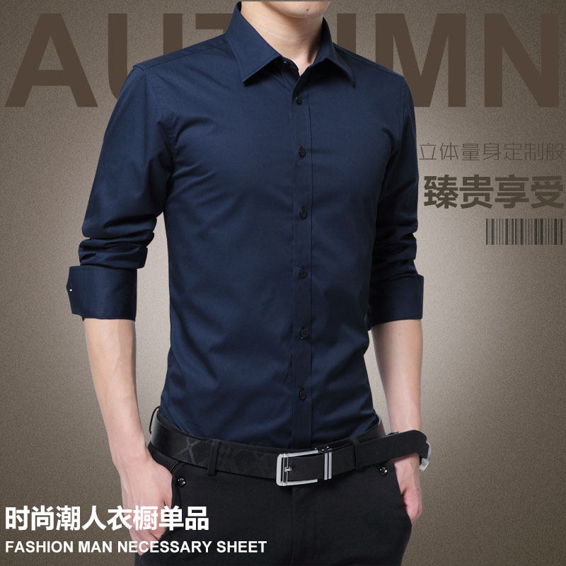 商务休闲衬衫男长袖修身白衬衣免烫韩版时尚工作寸衫潮流帅气正装