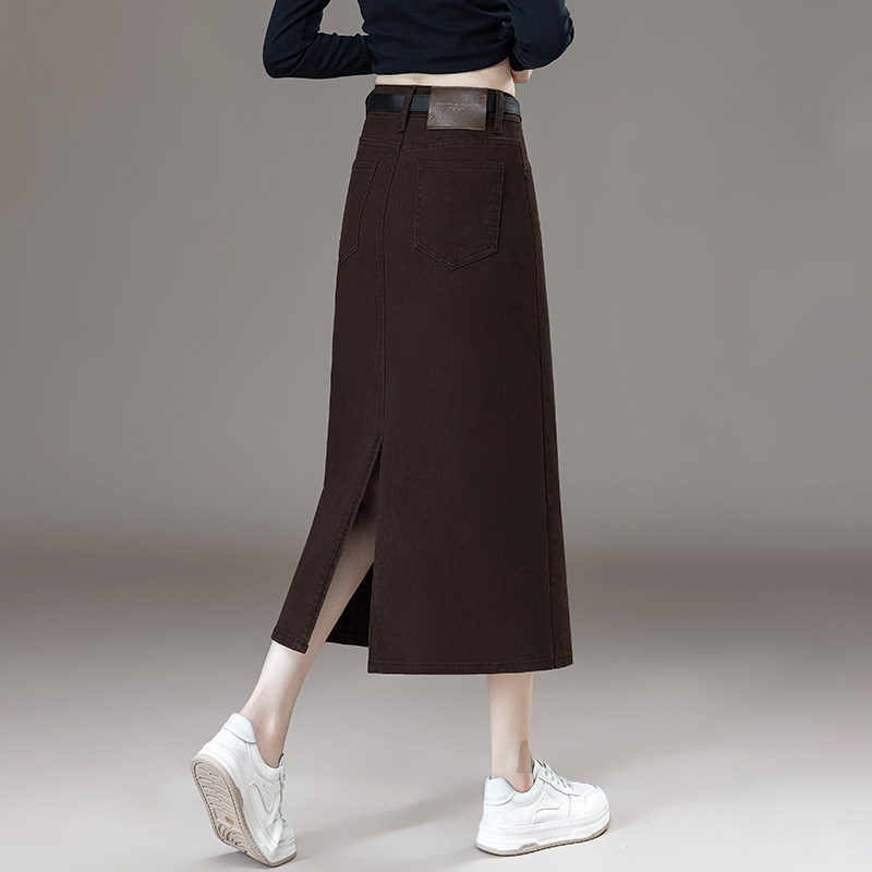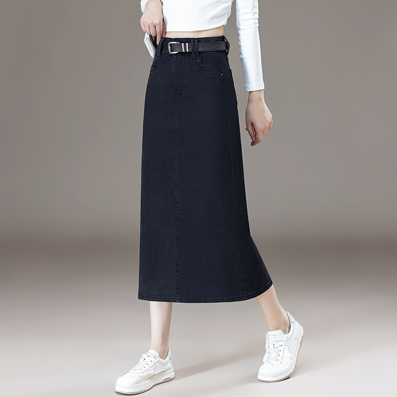 牛仔半身裙女2025年秋季新款高腰显瘦遮胯后开叉中长款一步包臀裙