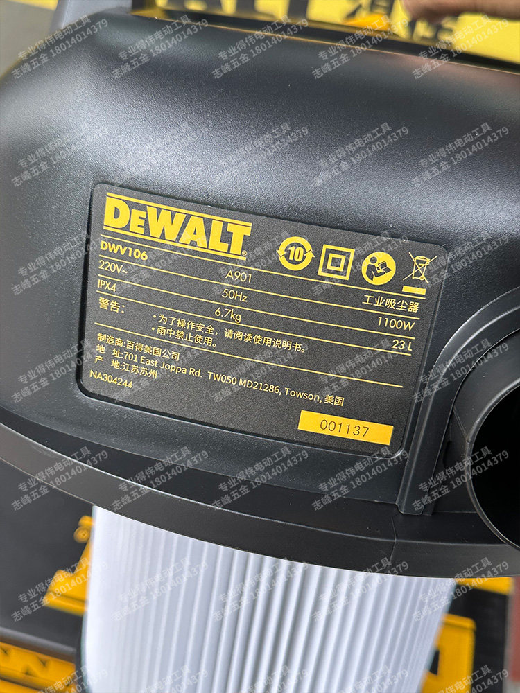 得伟吸尘器干湿两用工业级1100W大功率23L施工除尘机集尘器DWV106