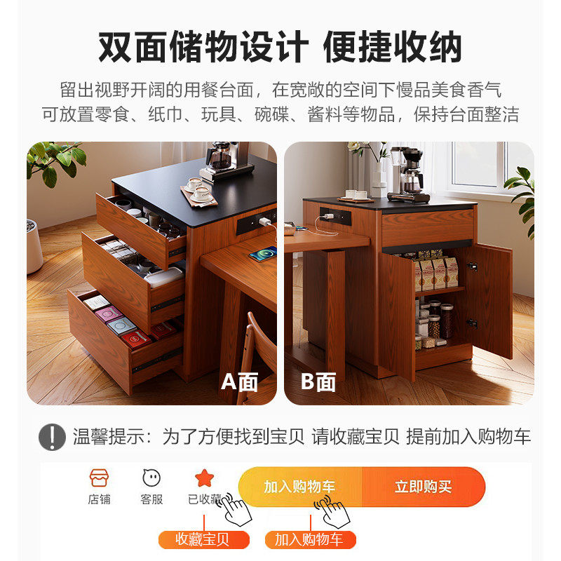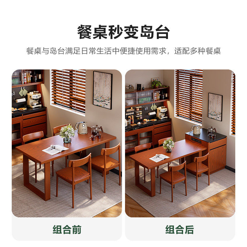 岛台餐桌一体独立分离式多功能美式实木厨房岩板餐台岛台柜单独