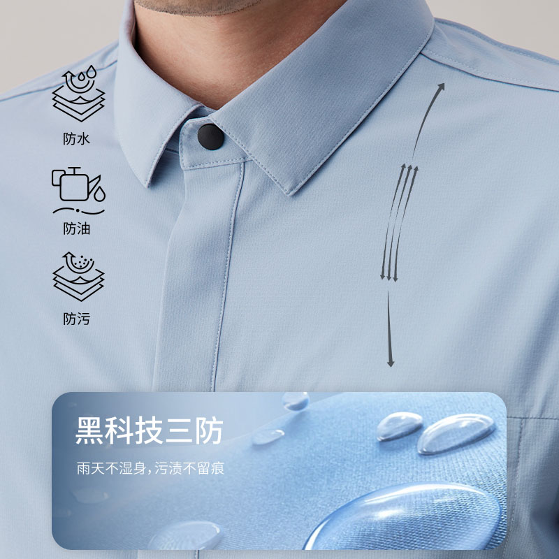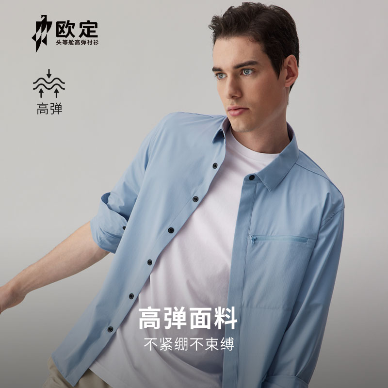 【三防免烫】欧定头等舱软壳衬衫男防晒轻户外新款光子蓝高端男装