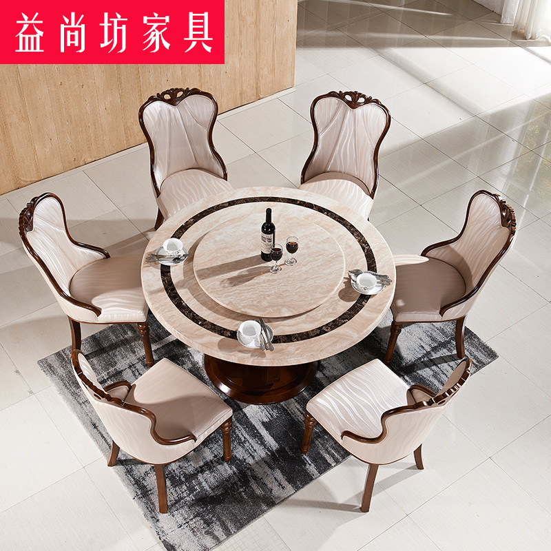 欧式餐桌椅组合现代简约圆餐桌实木6人饭桌小户型大W理石餐桌圆桌