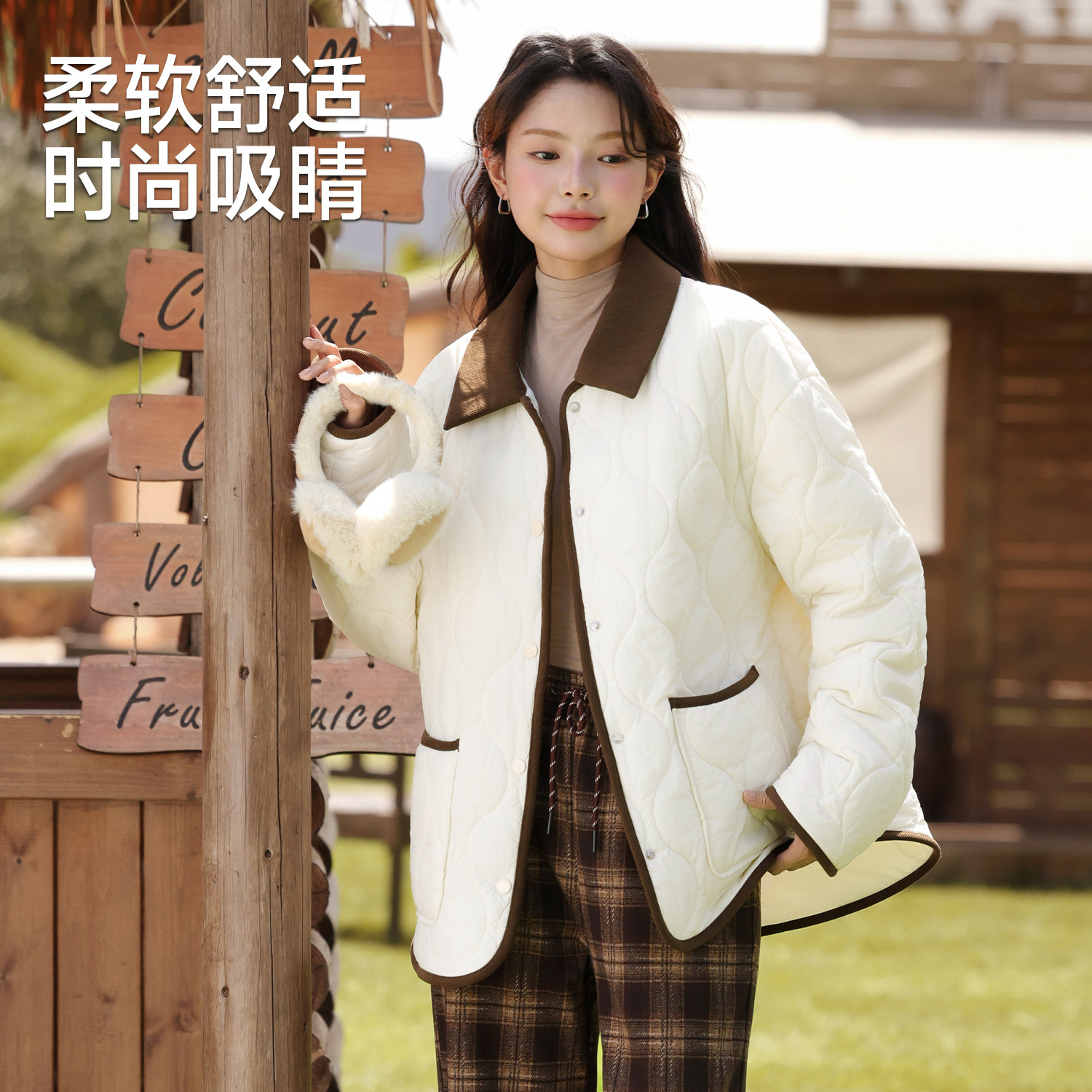 班尼路黑色翻领棉服女2025秋冬新款韩版小个子穿搭休闲棉袄外套N