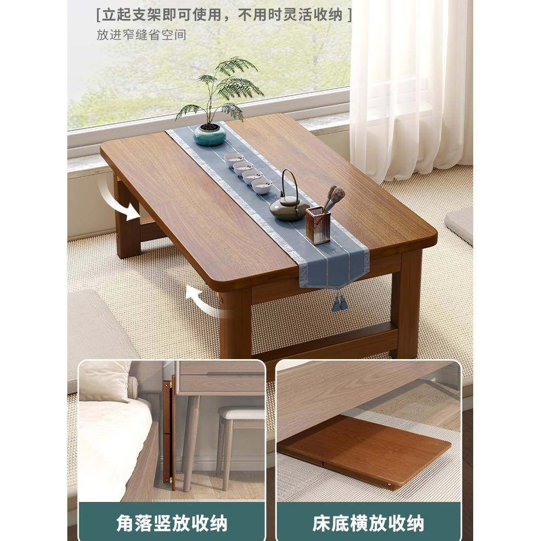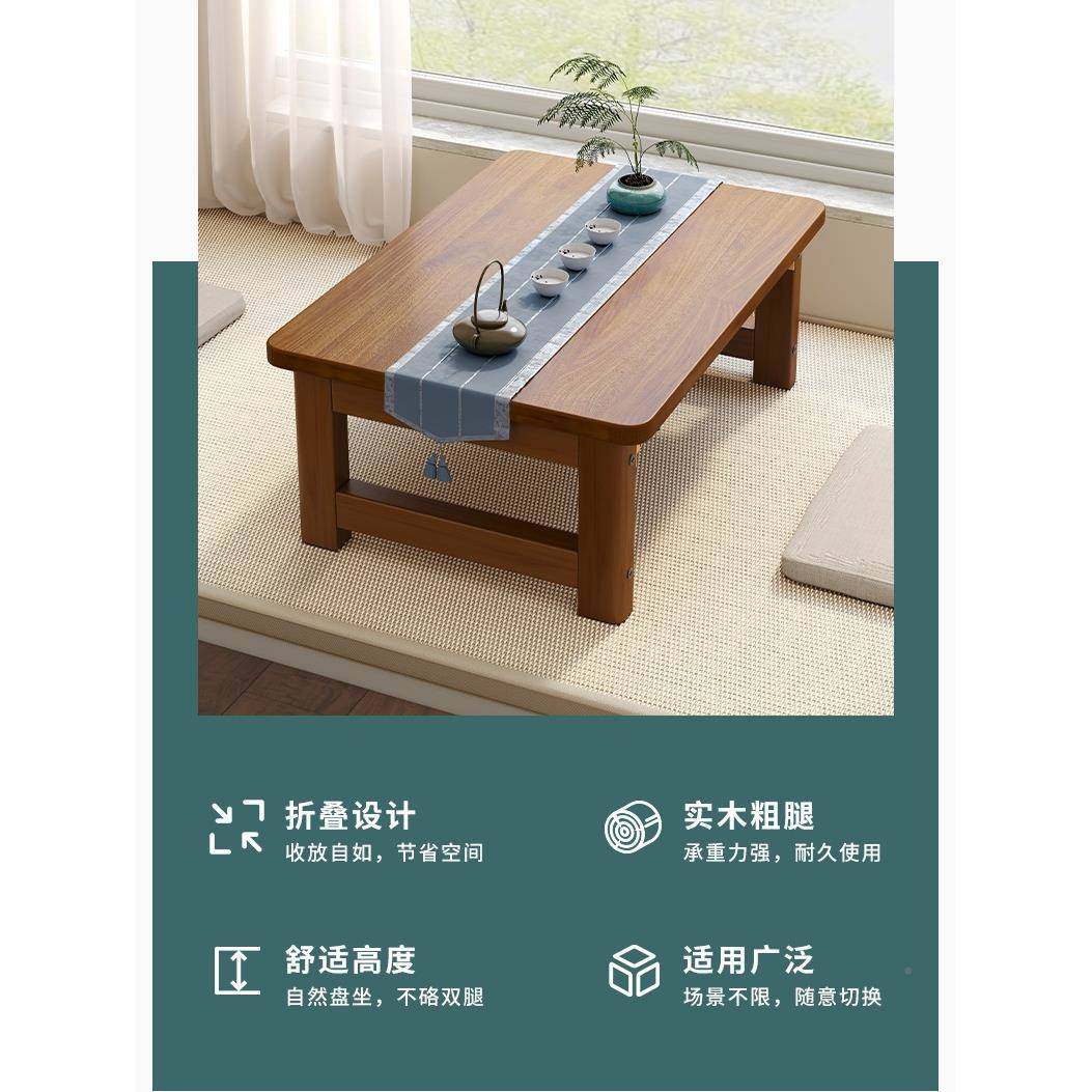 飘窗桌可折叠榻米实桌子中式坐地茶几日F77MJ556小式茶桌床上矮榻