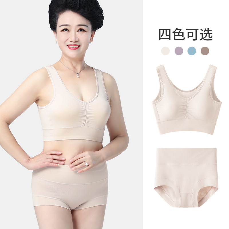 春织妈妈文胸背心式中年内衣女运动胸罩夏季无钢圈薄款老年人大码