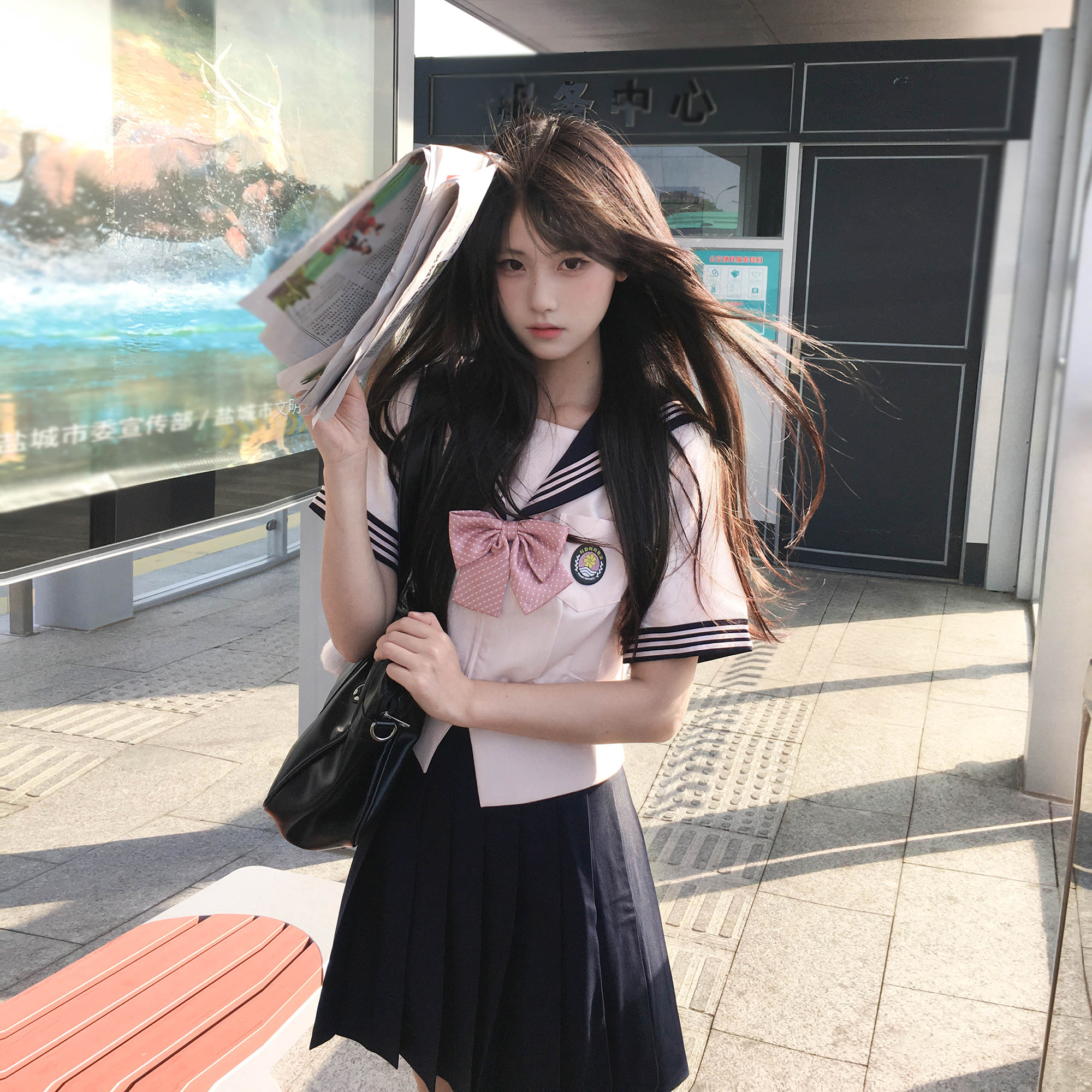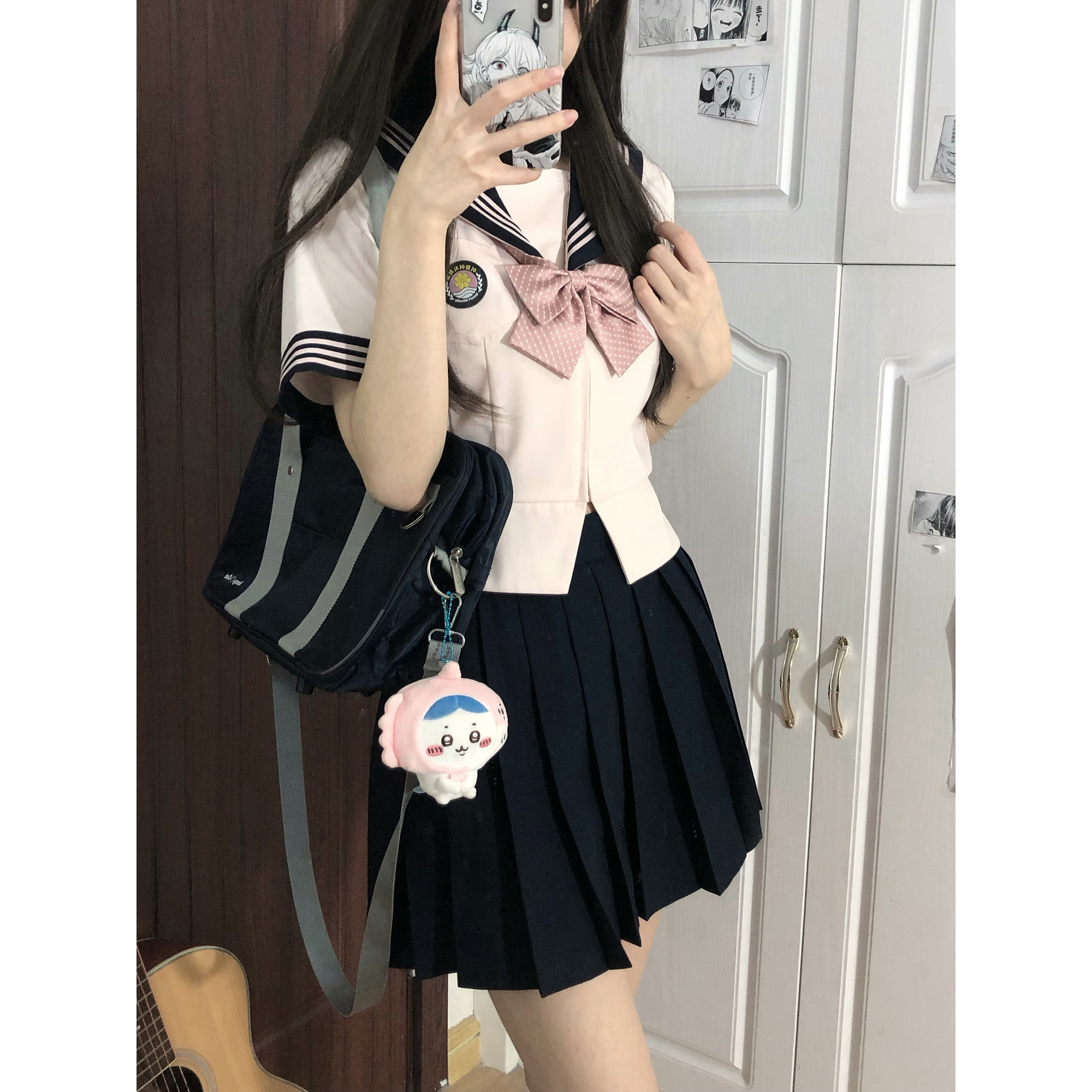 粉色短袖原创日系水手服