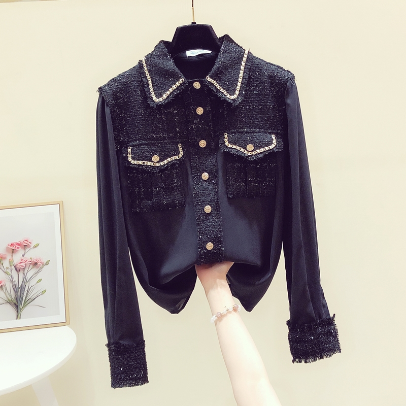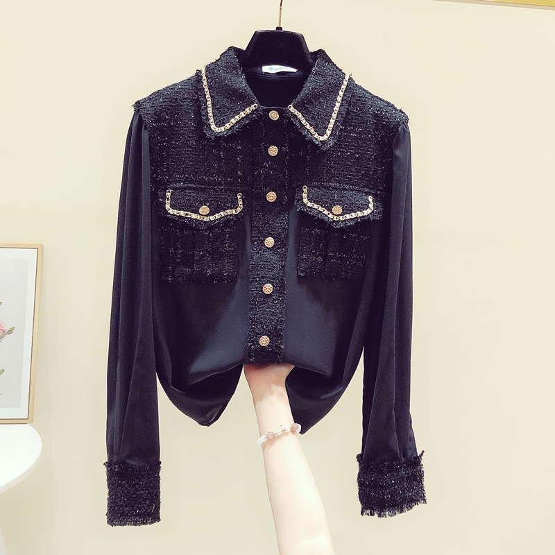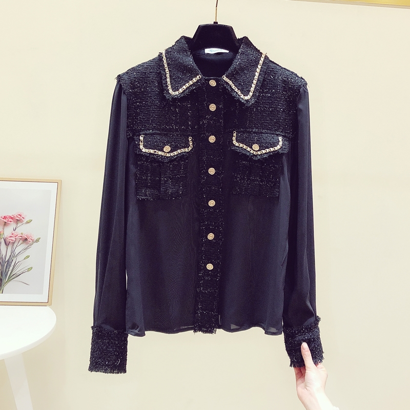 法式重工白色拼接雪纺衬衫女2025早春新款欧货设计感小众洋气上衣