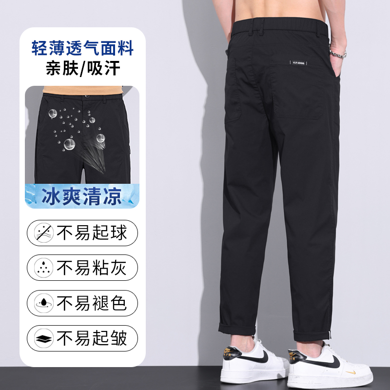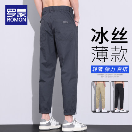 罗蒙男士冰丝休闲裤2025新款宽松直筒男裤夏季薄款运动九分裤子男