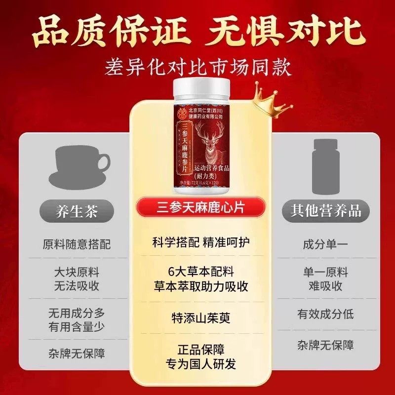 同仁堂三参天麻鹿心片正品