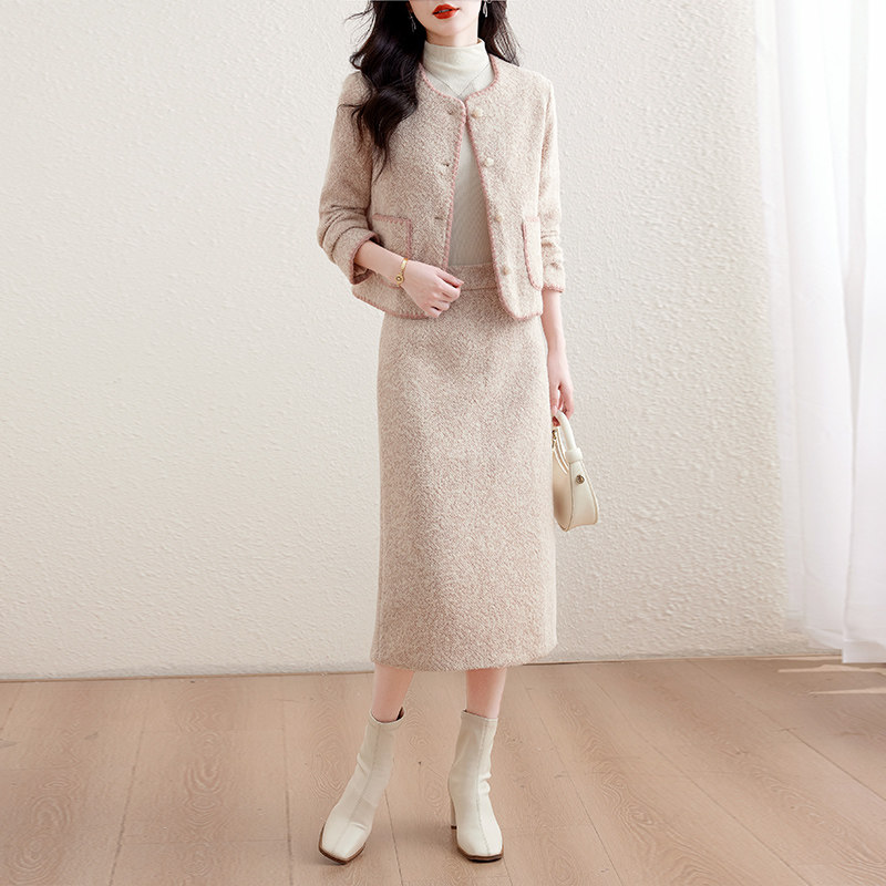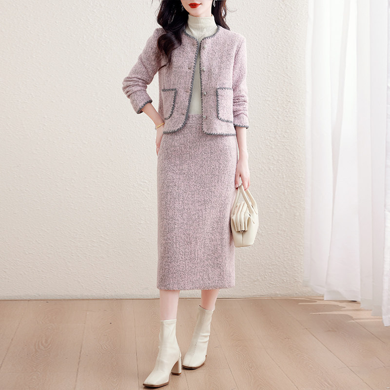 实拍小香风套装女春秋2025新款名媛气质富家千金毛呢小个子套装裙