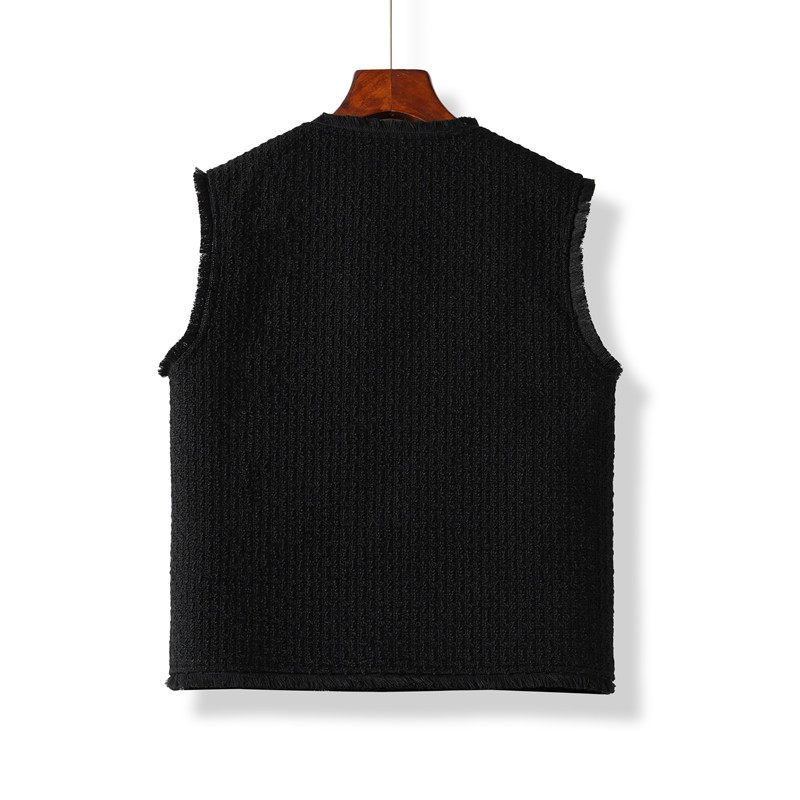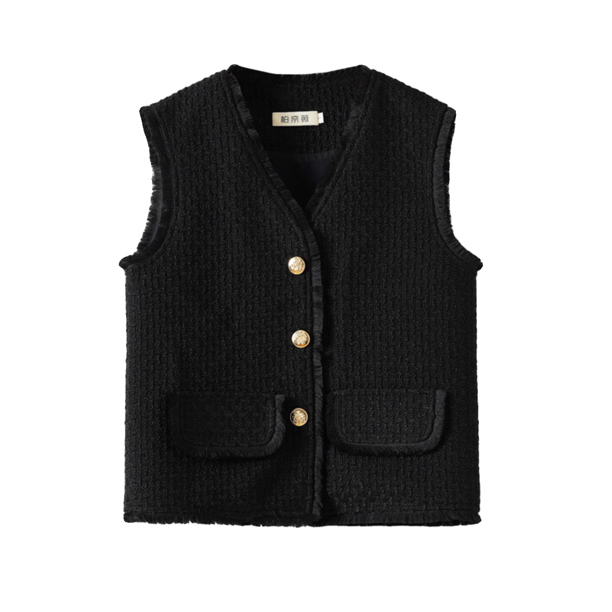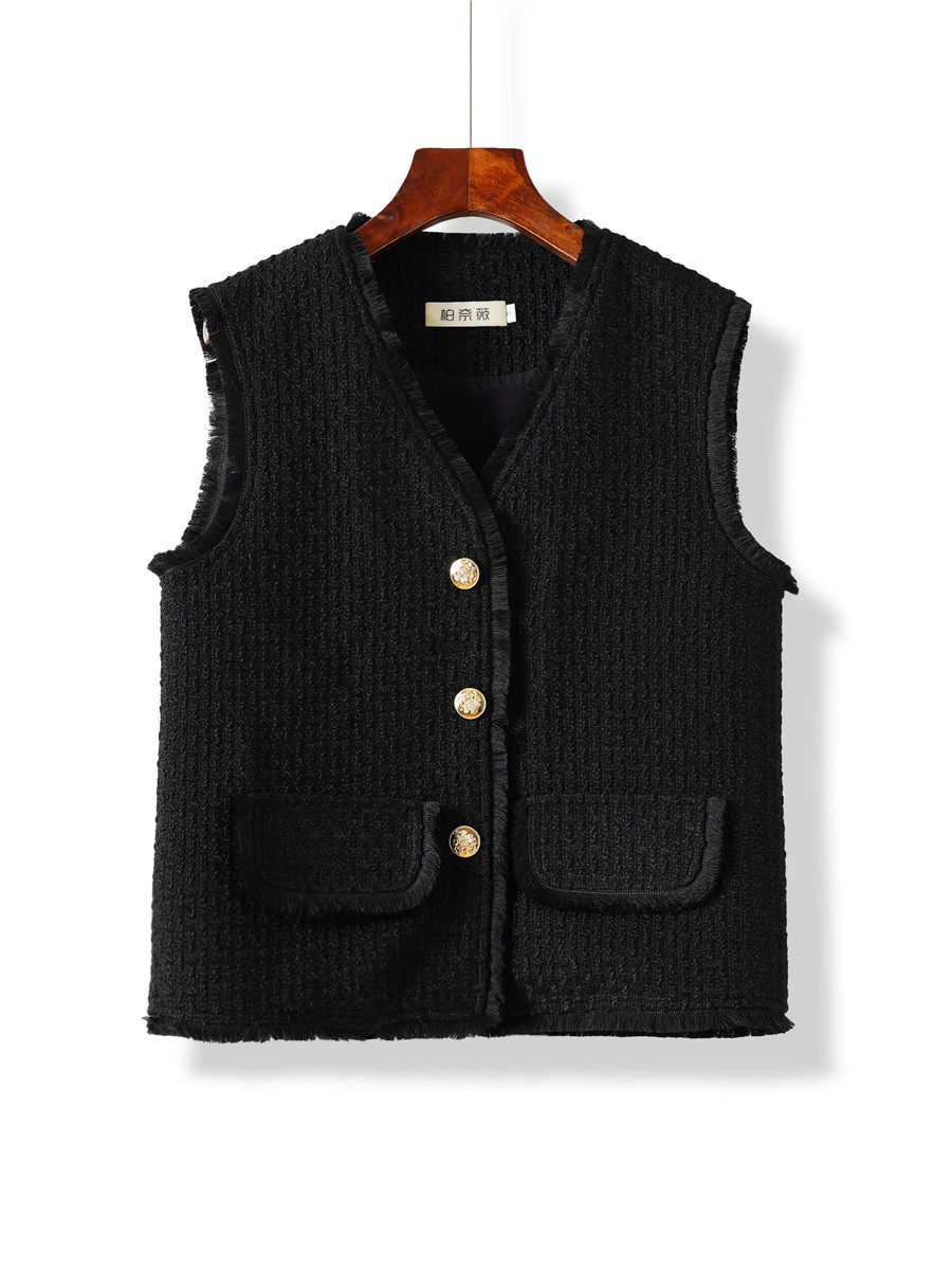 柏奈薇小香风短款马甲女2024秋冬黑色显瘦流苏款小个子女羽绒内里