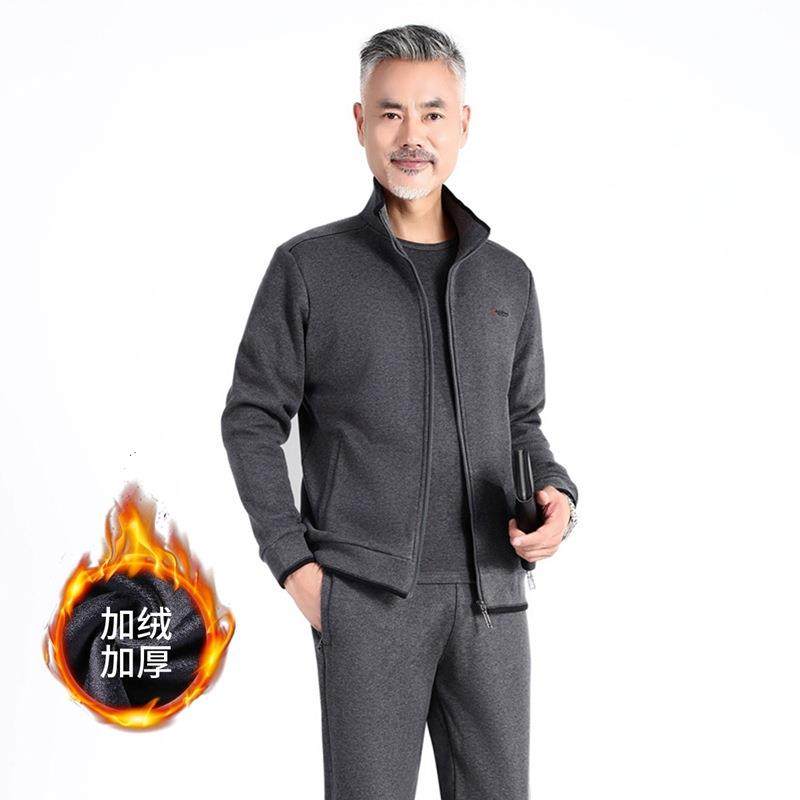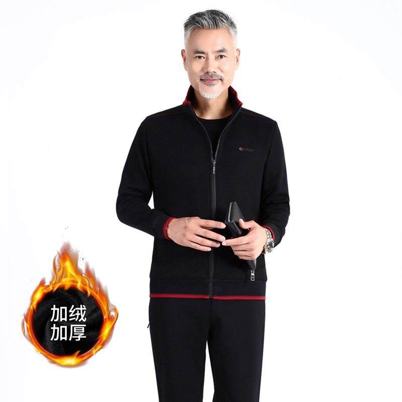中老年加绒休闲套装男士大码运动服两件套冬季加厚套装爸爸装
