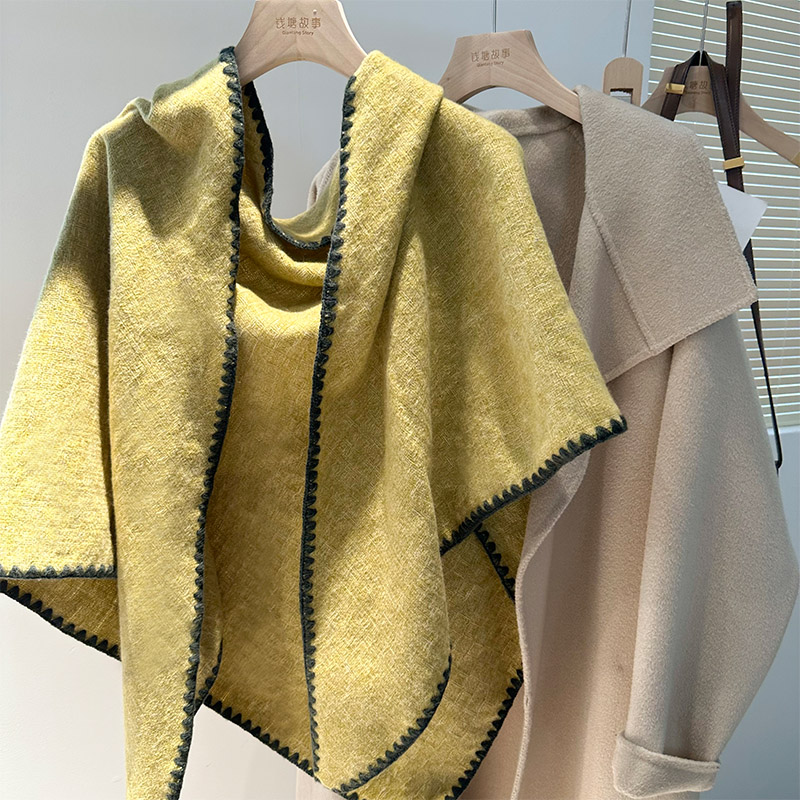 色织工艺三角巾!百搭纯色围巾女冬季手工包边防风多功能披肩围脖