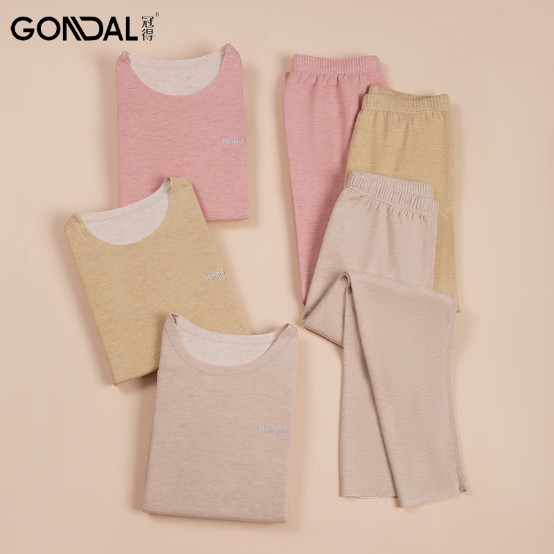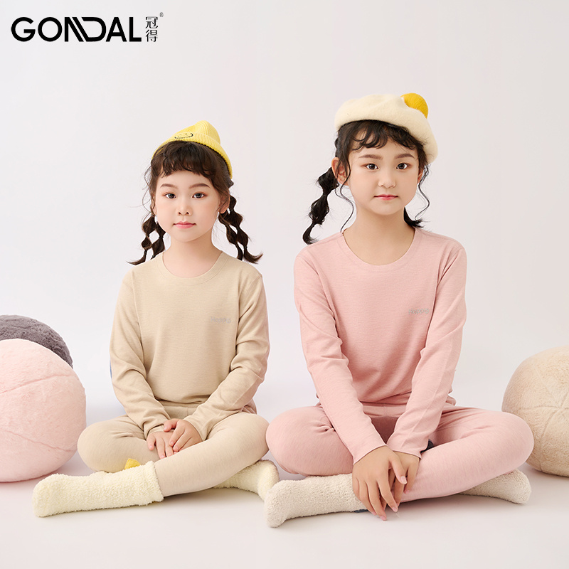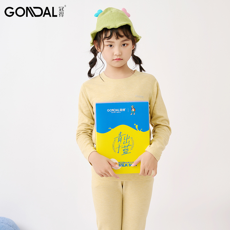 冠得大童中童润奶蚕丝女童保暖套装内衣儿童少年秋衣裤中领秋冬季