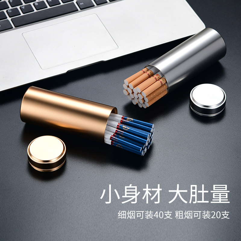 便携金属烟盒带胶圈密封防水铝合金细烟烟盒保湿罐烟罐粗细支装烟