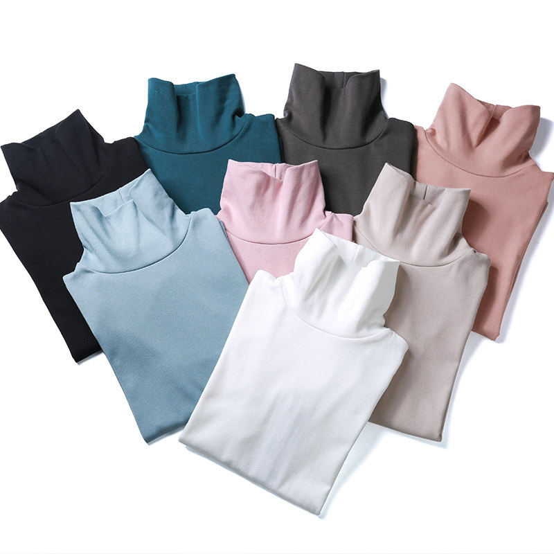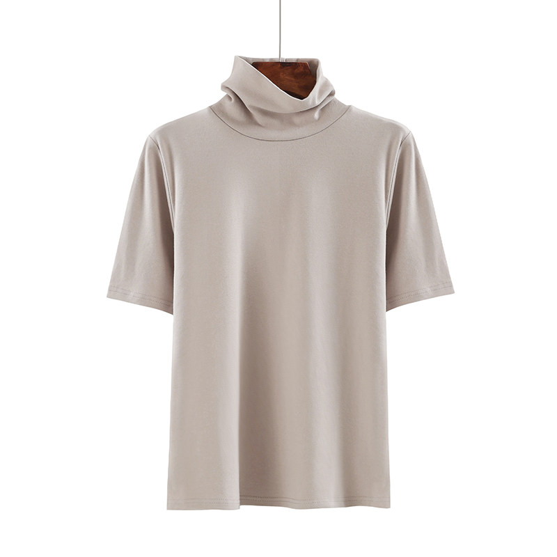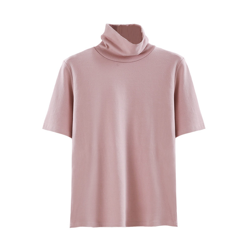 春秋季韩版纯棉纯色宽松休闲高领短袖体恤上衣内搭女打底衫T恤
