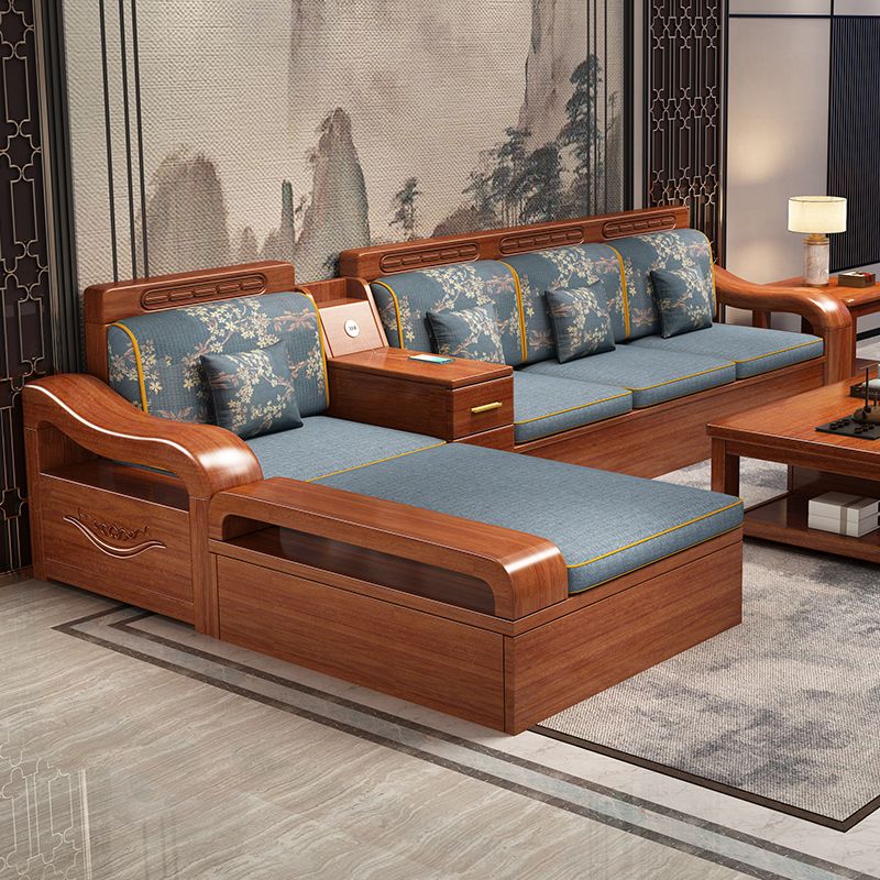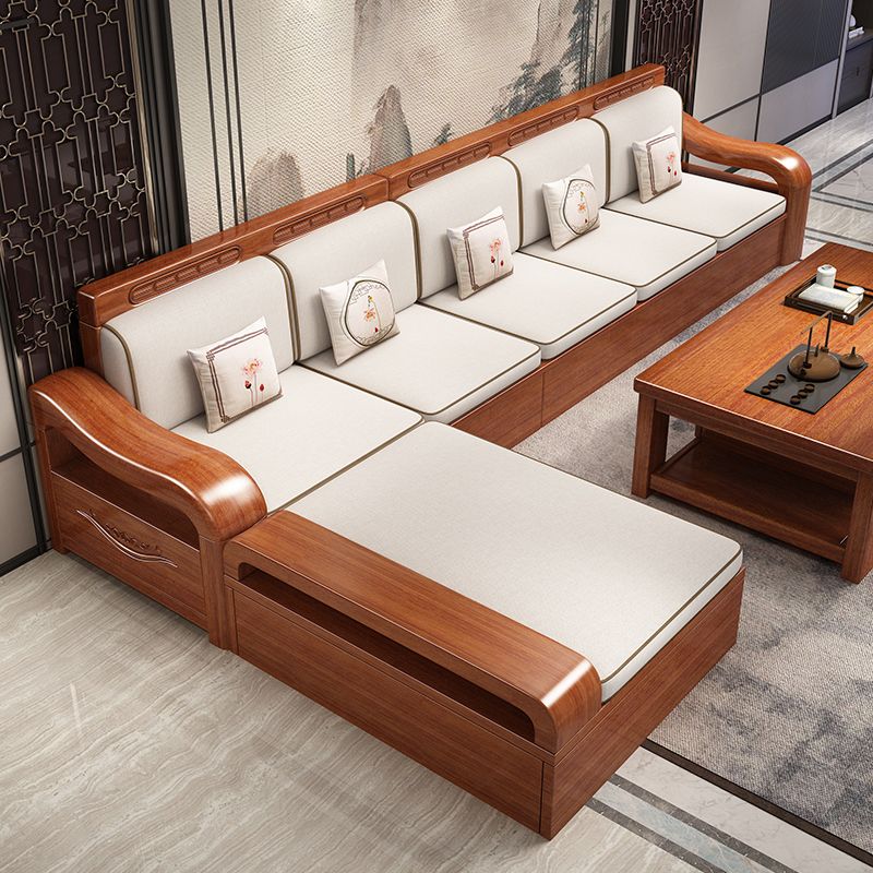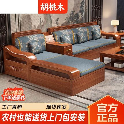 胡桃木实木沙发组合中式客户大户型冬夏两用储物直排沙发