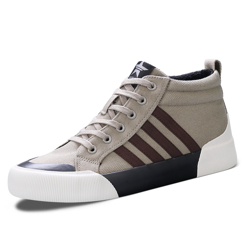 2025冬季新款男鞋韩版高帮帆布鞋时尚百搭休闲鞋男士系带平底板鞋