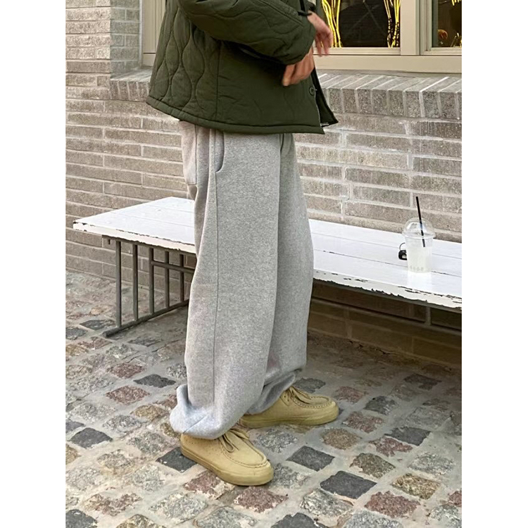 韩国东大门代购冬季时尚简约百搭松紧腰加绒束脚运动休闲裤男卫裤